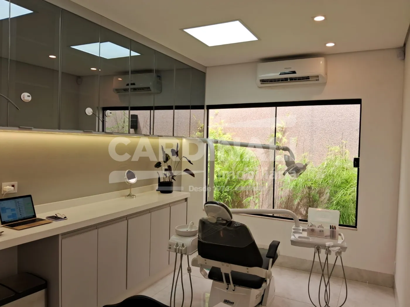 Sala ampla, totalmente montada para odontologia, recepção, banheiros já adaptados, sala de espera, sala de esterilização, sala de expurgo, copa, recuo para carros,