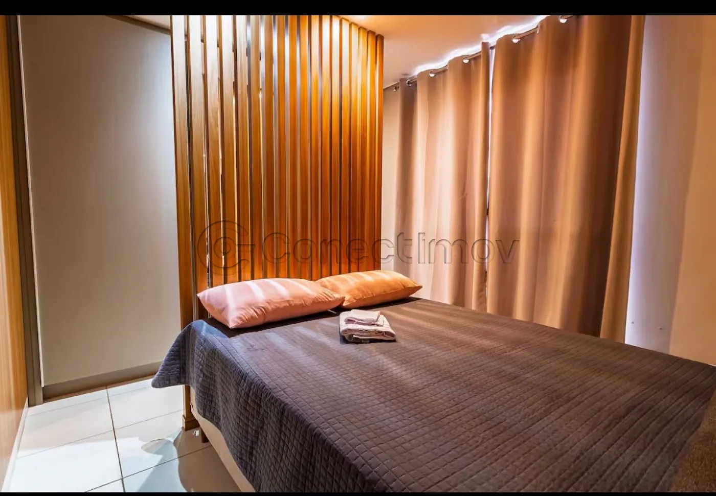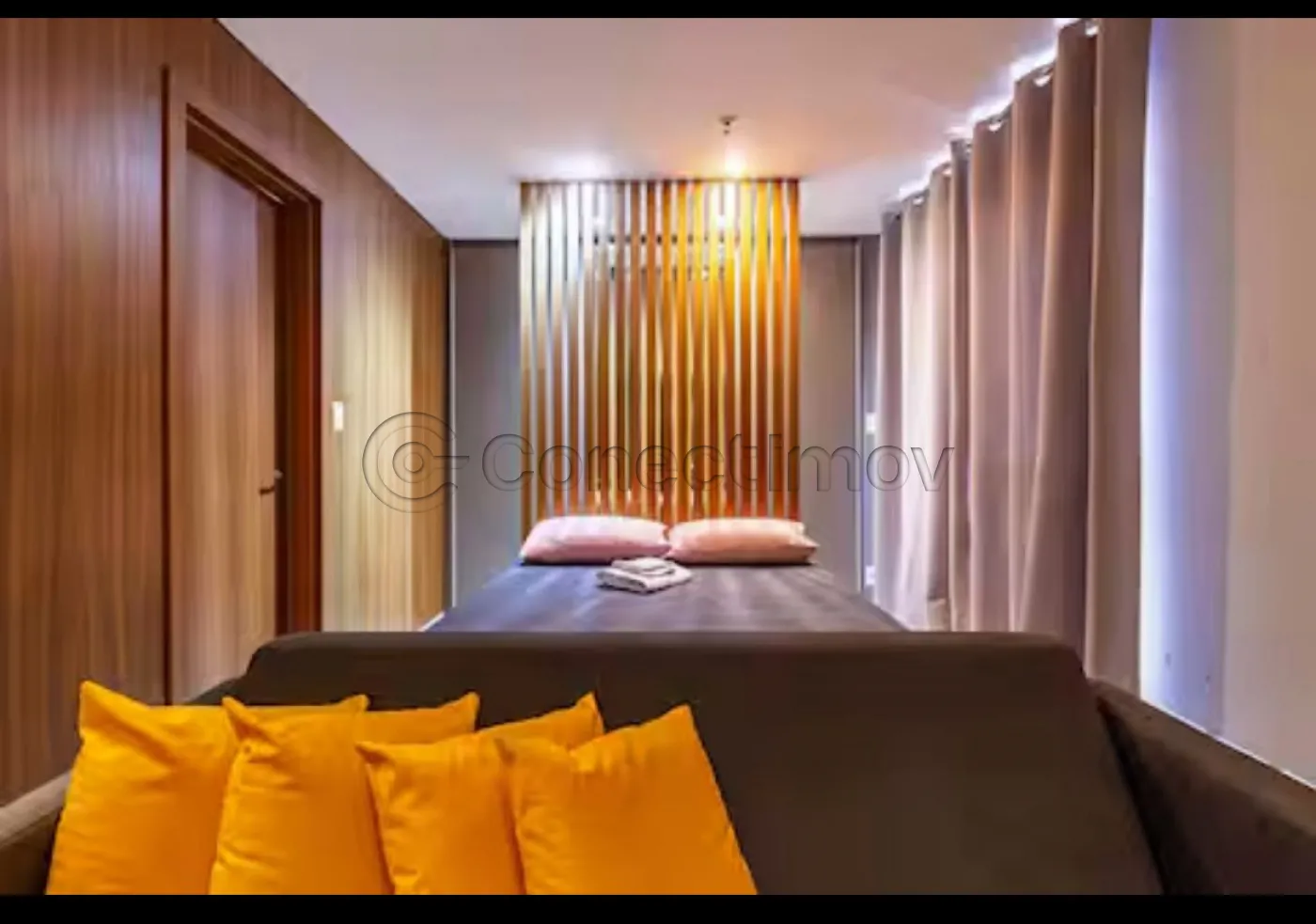 • 1 dormitório com ar-condicionado e saída para sacada proporcionando conforto e uma vista agradável