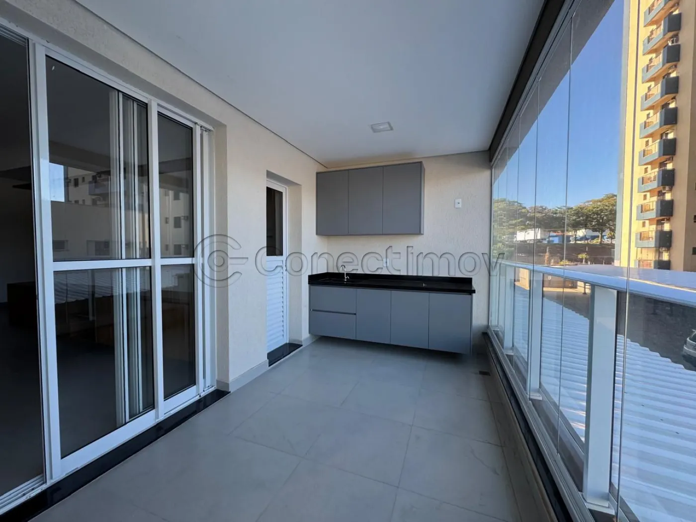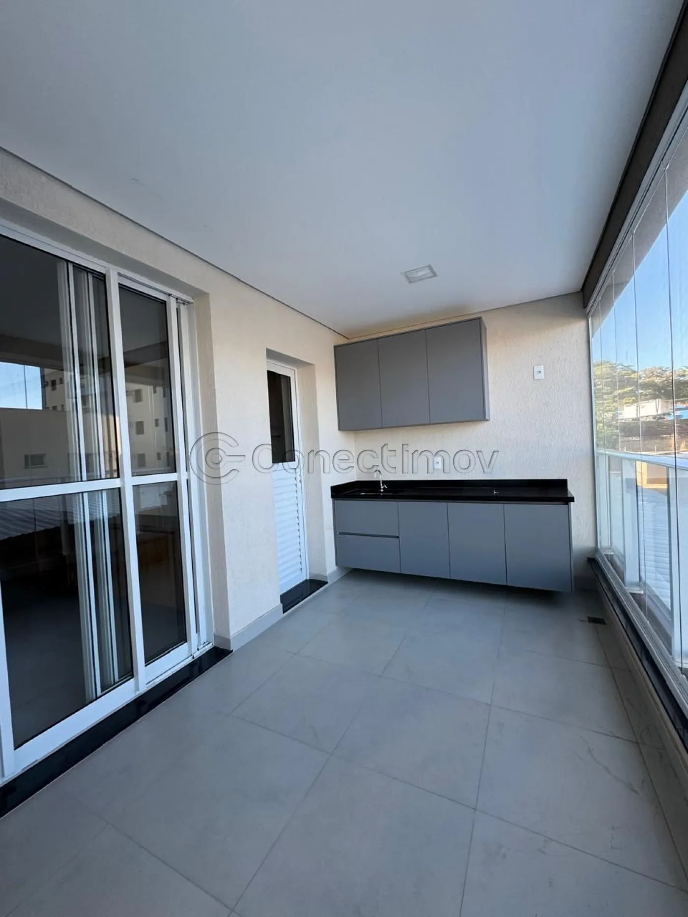 ? Varanda com bancada e armários, proporcionando uma área extra aprazível.