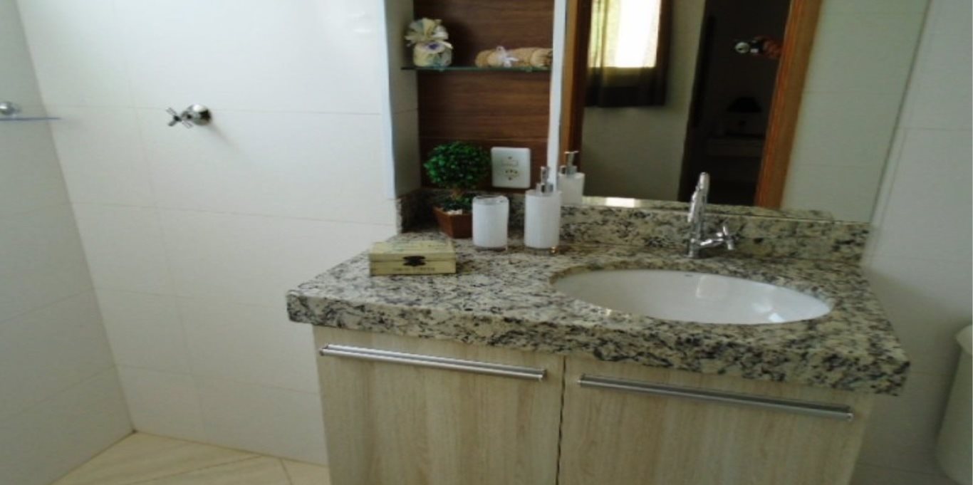 Banheiro com gabinete e box blindex