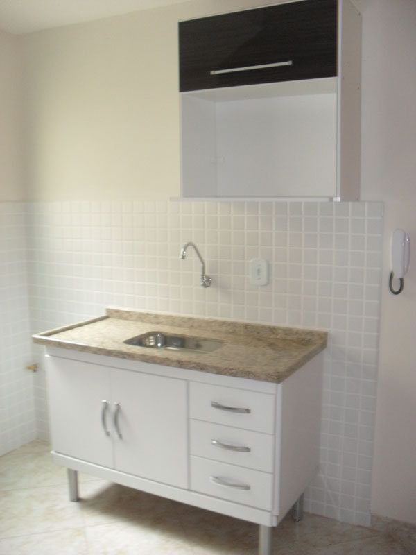 Piso frio, teto em laje, banheiro, cozinha possui azulejo até o teto, banheiro possui gabinete e box, cozinha possui gabinete e armário.