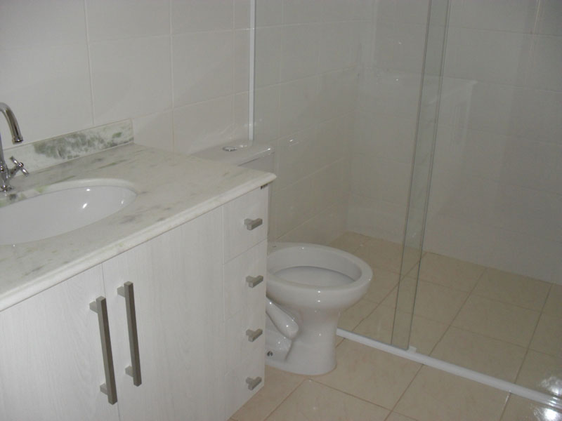 Acabamento em piso frio; teto laje; banheiro, cozinha e área de serviço com azulejo até a metade da parede; dormitórios e suíte com armários; banheiro com gabinete e box; cozinha com gabinete e armários; área de serviço com armários. Condomínio com churrasqueira, play ground, portão eletrônico.