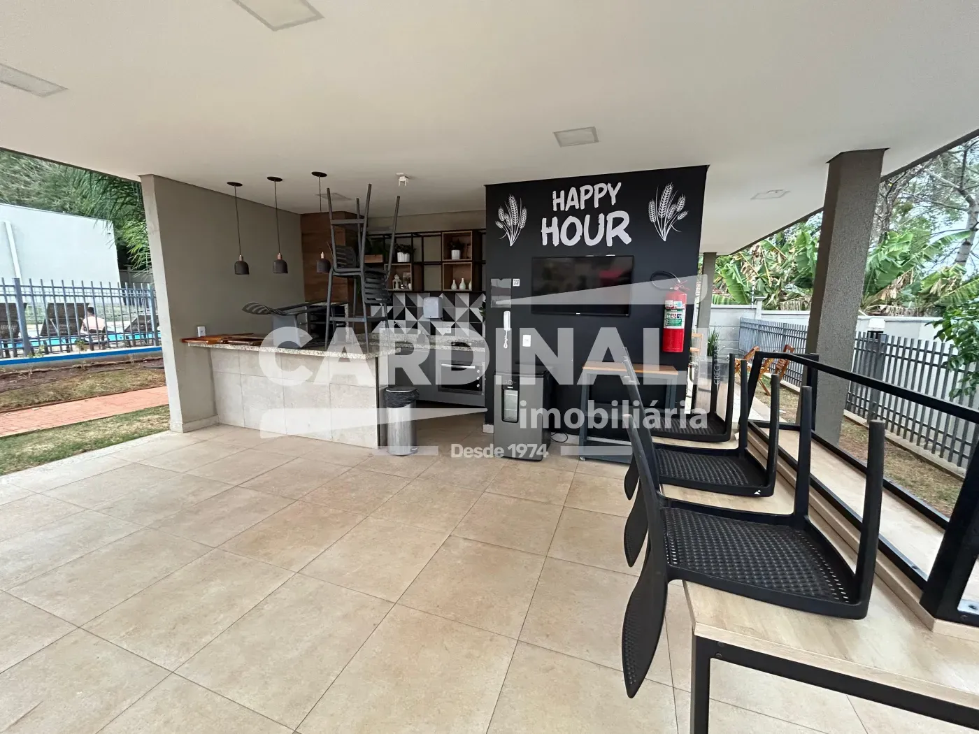 Condomínio com área de lazer completo, piscina, playground, salão de festas, portaria 24 horas.