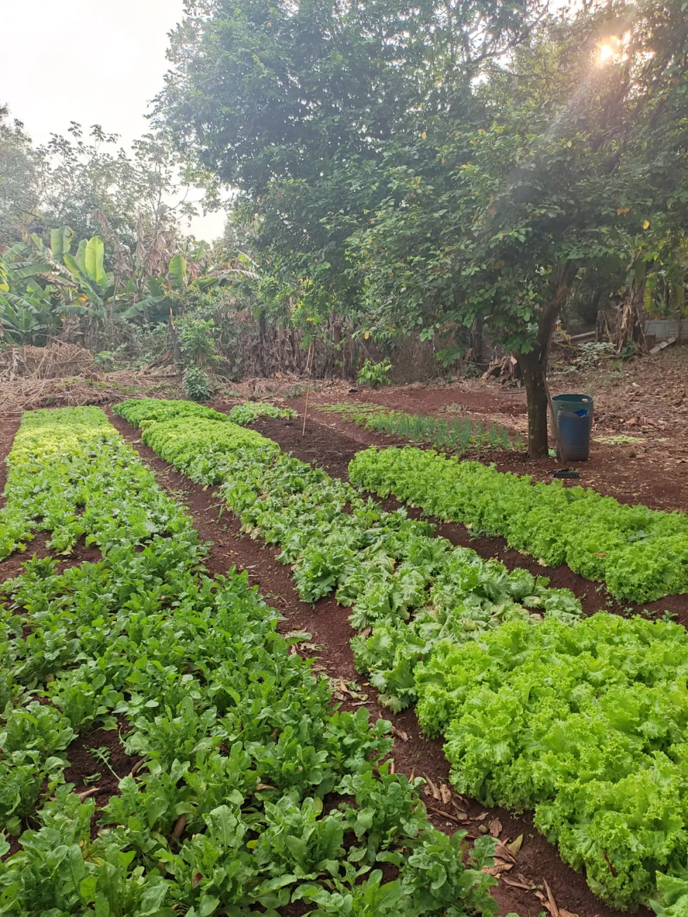 • Horta e árvores frutíferas oferecendo frescor e saúde no cultivo próprio