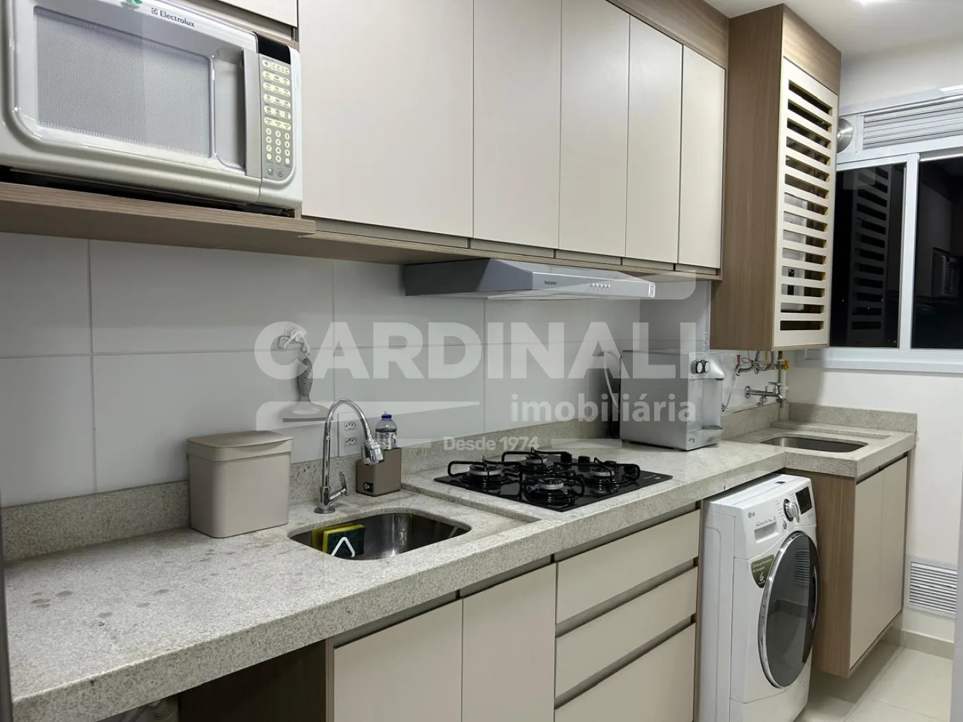 • Cozinha planejada com eletrodomésticos modernos, oferecendo praticidade para o preparo de refeições