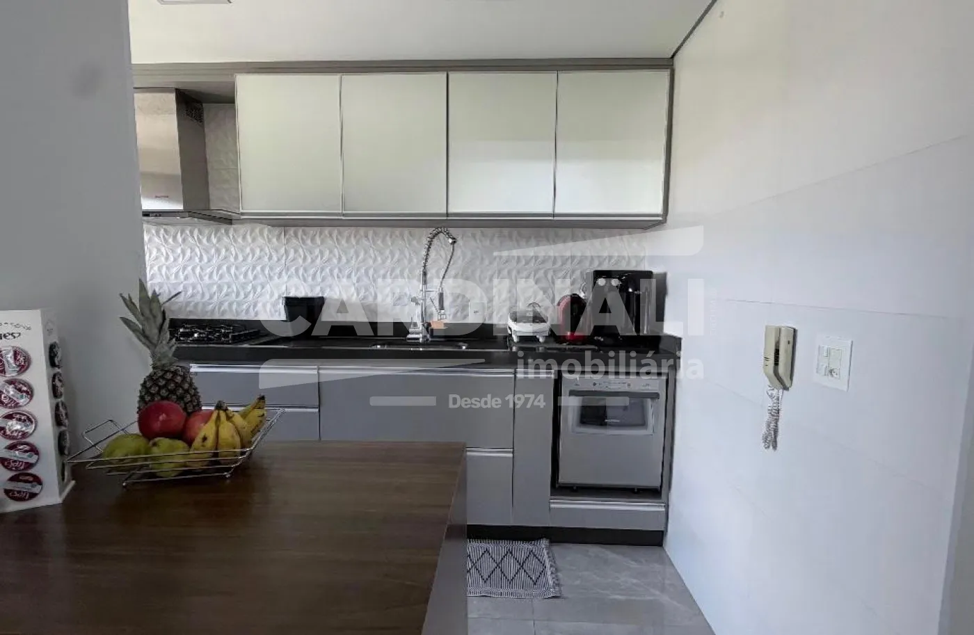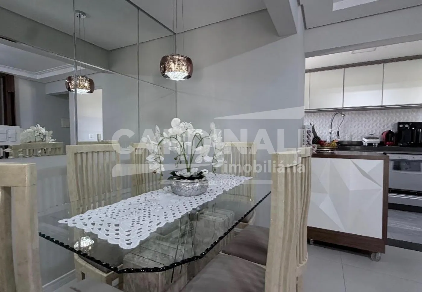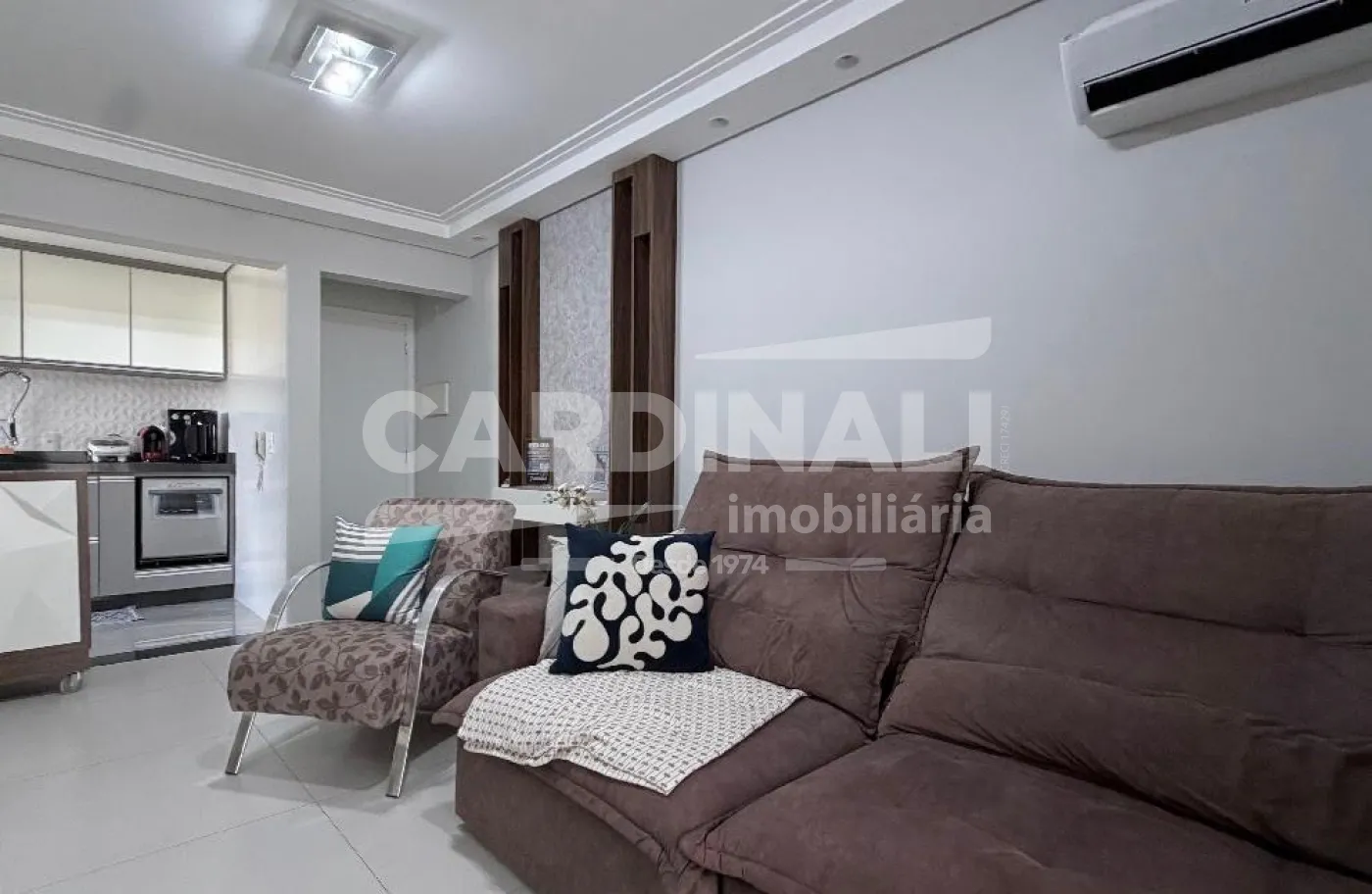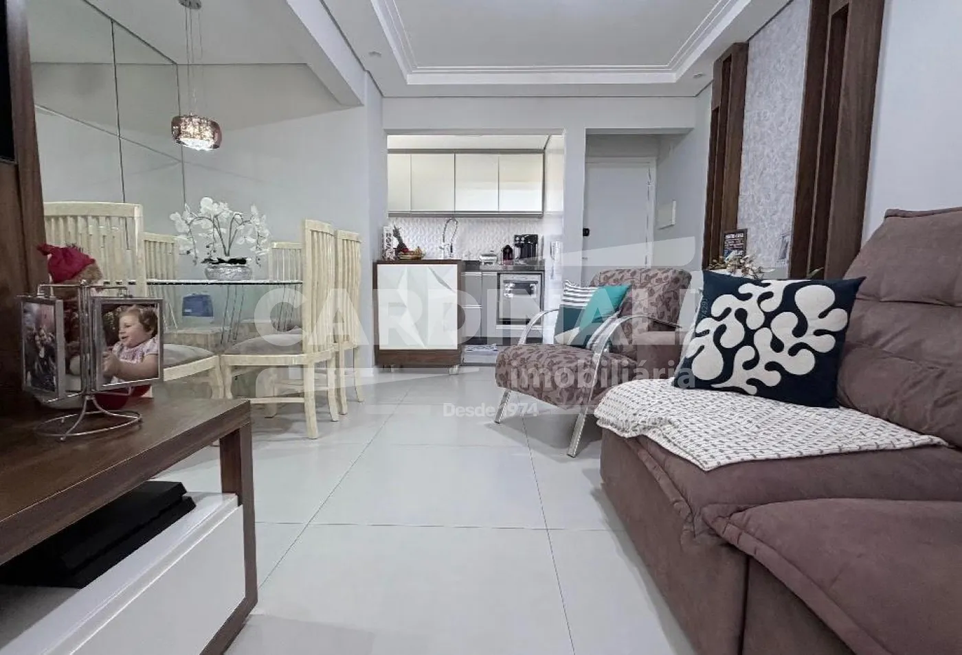 O apartamento conta com sala ampla integrada, proporcionando um ambiente agradável para convivência, além de cozinha com armários planejados e dormitórios bem aproveitados.