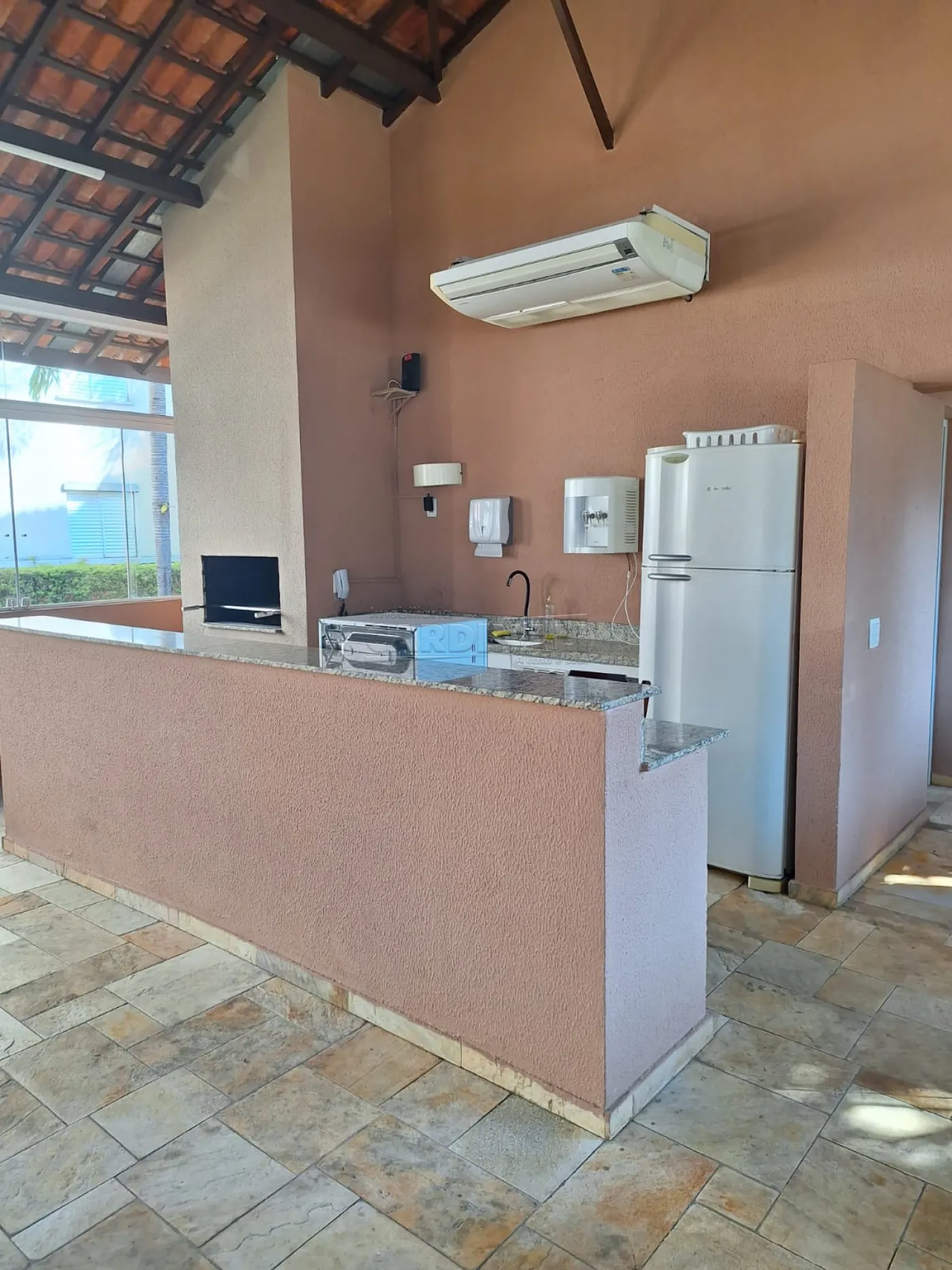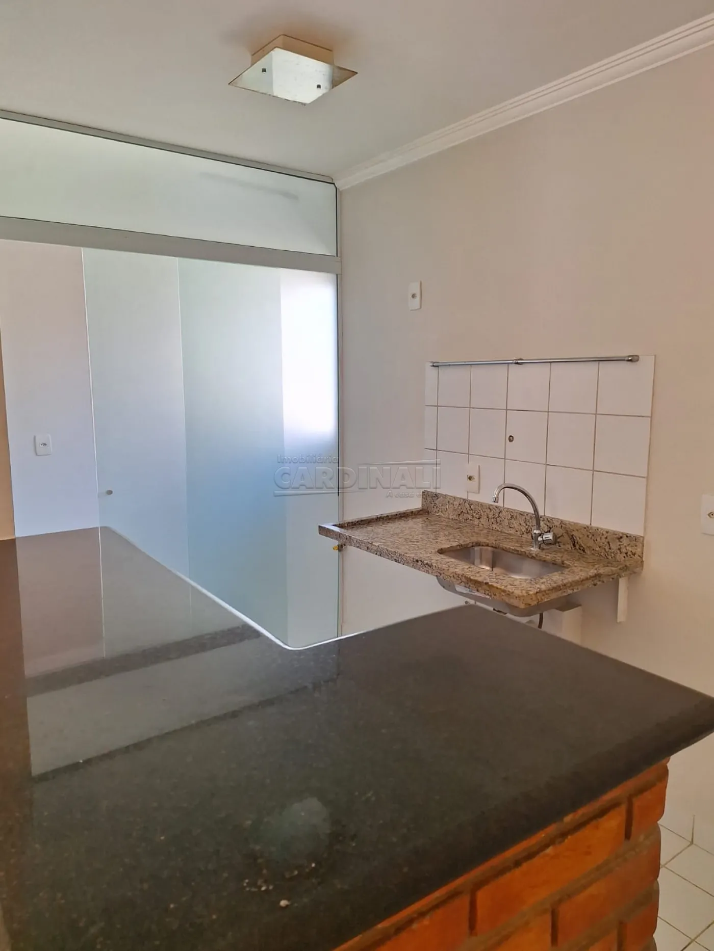 • Acabamentos em porcelanato e balcão em mármore preto, assegurando elegância e facilidade de manutenção