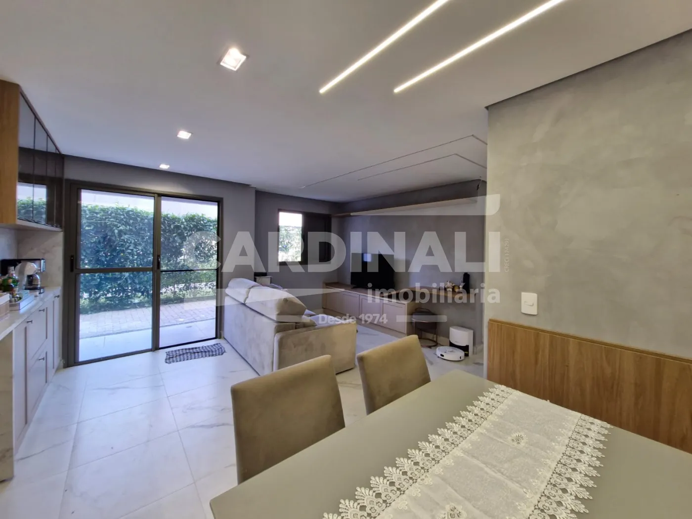 ? Área social espaçosa com acesso a uma sacada com churrasqueira, proporcionando momentos de lazer