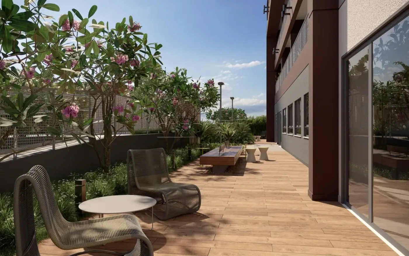 • Sala de estar e jantar integradas com a varanda, maximizando o espaço útil