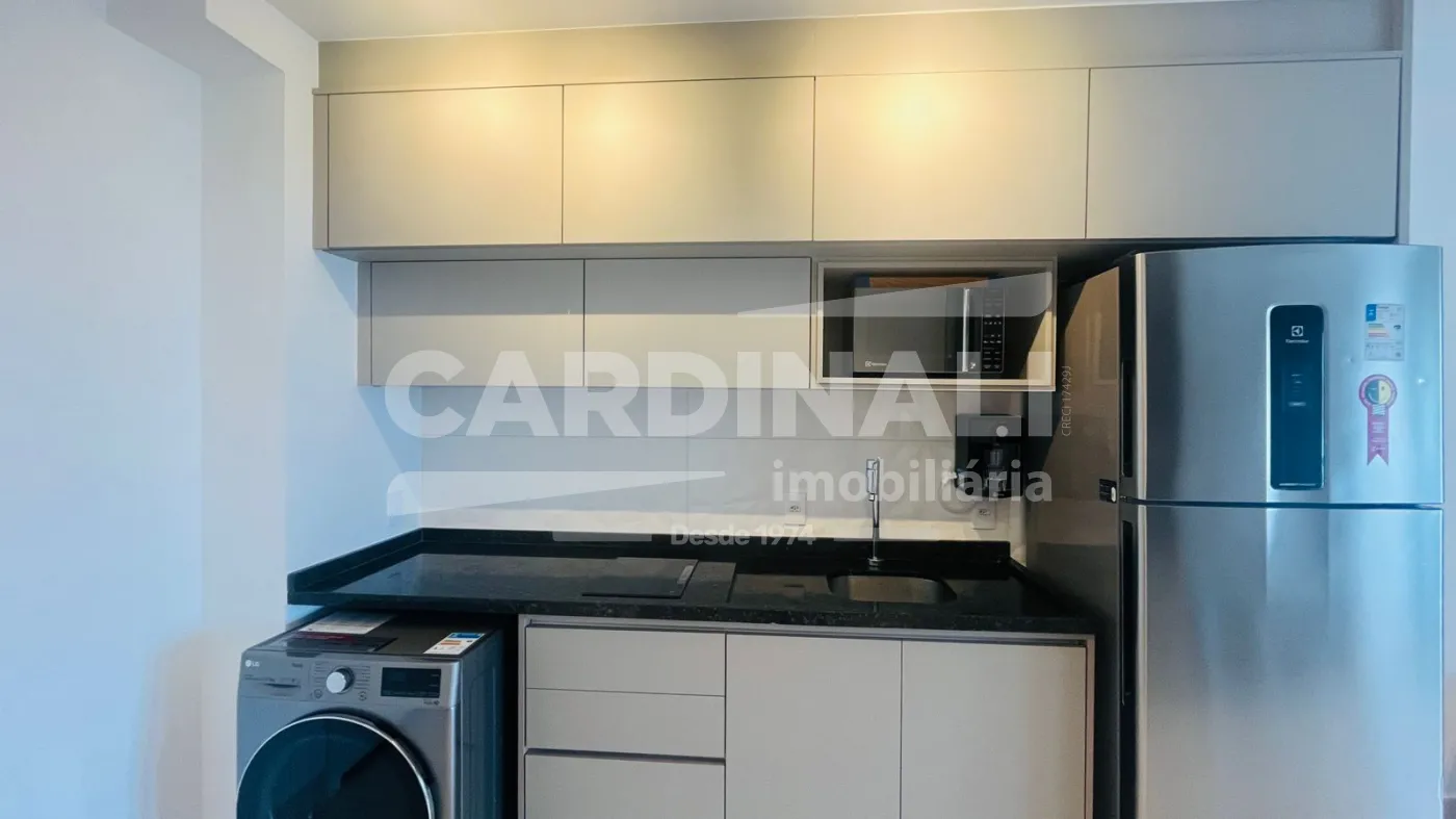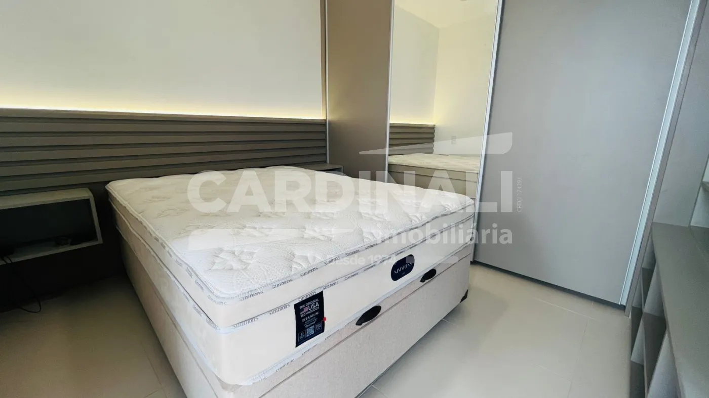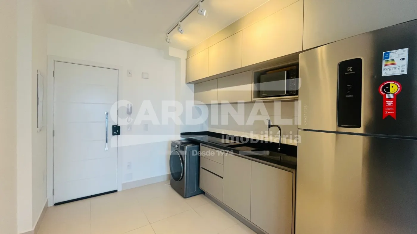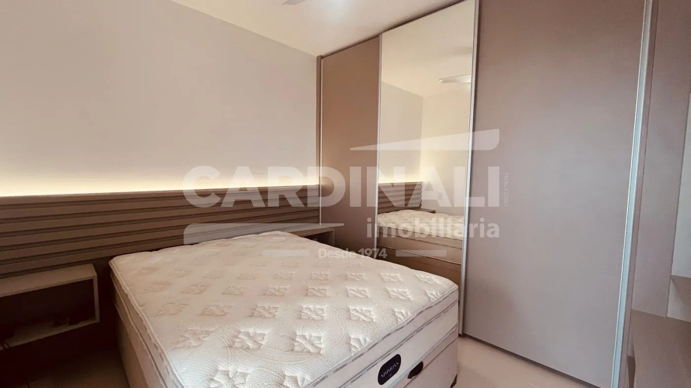 O apartamento conta com ambientes bem planejados, integrando sala e cozinha, além de armários planejados que garantem organização e praticidade no dia a dia. Totalmente mobiliado, inclui eletrodomésticos e itens essenciais, proporcionando uma experiência imediata de conforto.