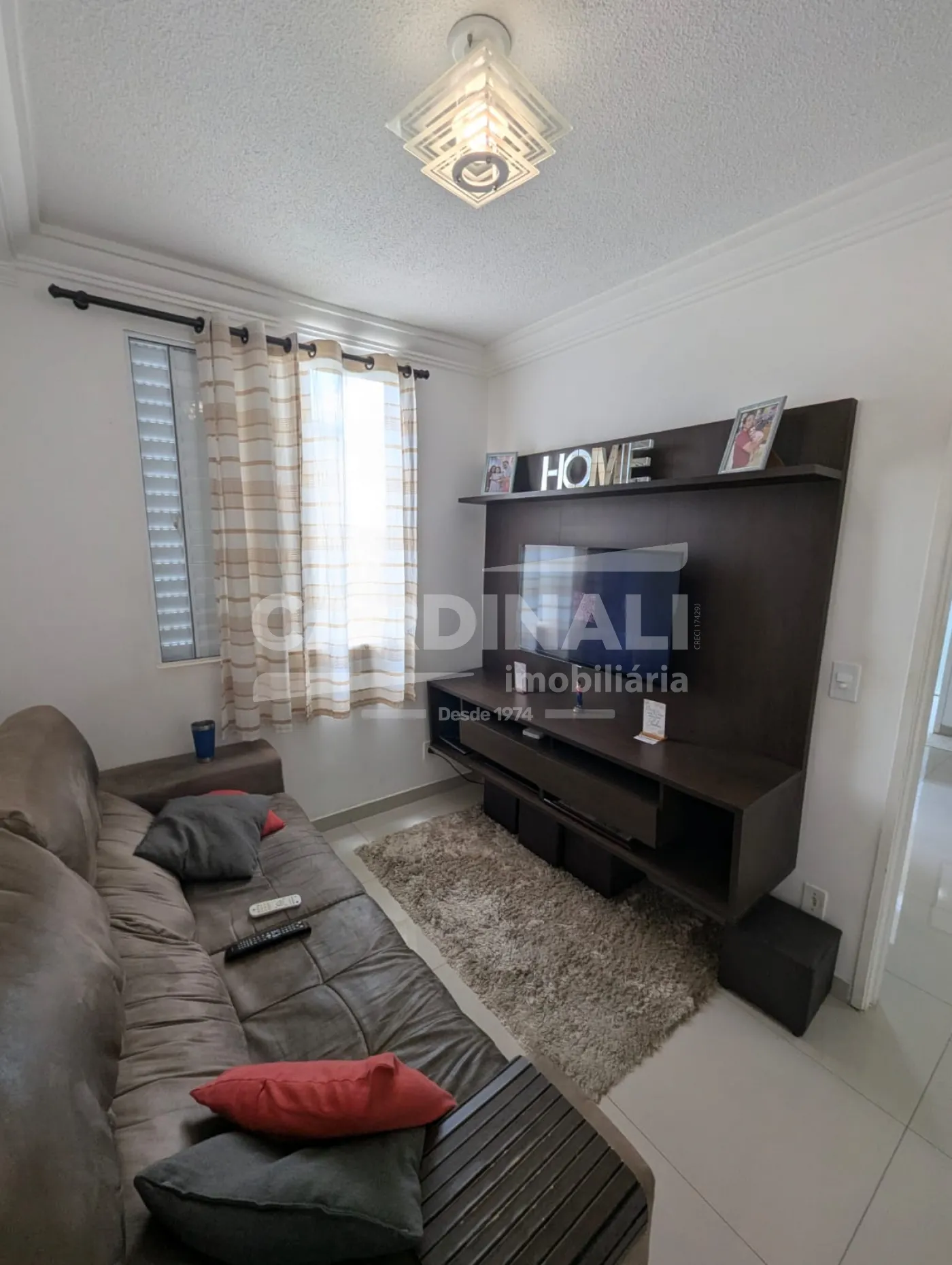 O imóvel conta com três dormitórios, sendo um deles adaptado para sala de TV, proporcionando ainda mais versatilidade ao espaço. A sala de estar é integrada e aconchegante, com acesso à varanda, criando um ambiente agradável para relaxar. A cozinha é prática, com boa iluminação natural, e o banheiro atende perfeitamente à rotina da casa.