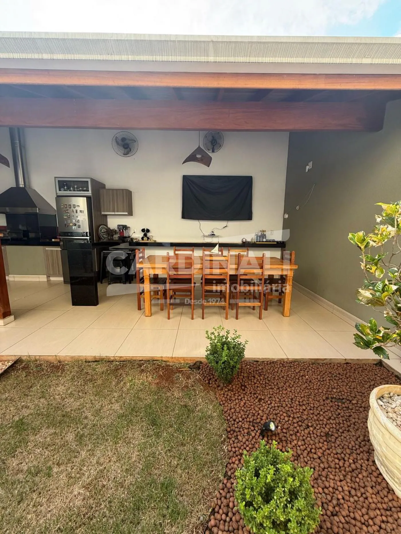 A residência oferece uma suíte master ampliando o seu refúgio pessoal, enquanto as salas de estar permitem que você desfrute de momentos prazerosos com a família e amigos. A área gourmet é um convite para celebrar ocasiões especiais, assegurando memórias afetivas ao redor de boas refeições. Além disso, a comodidade de ter uma cozinha já equipada e uma garagem coberta adiciona praticidade ao seu dia a dia.