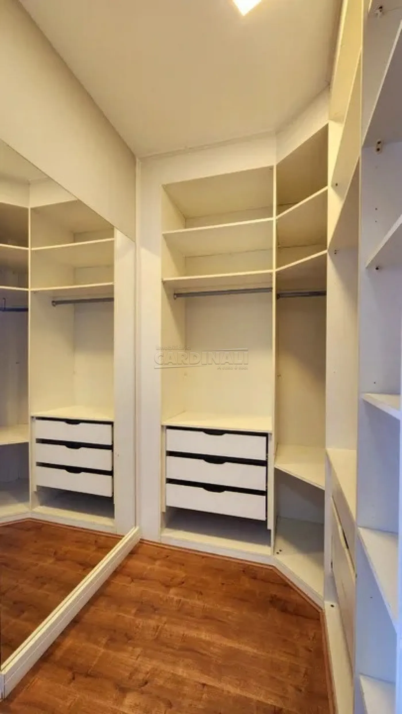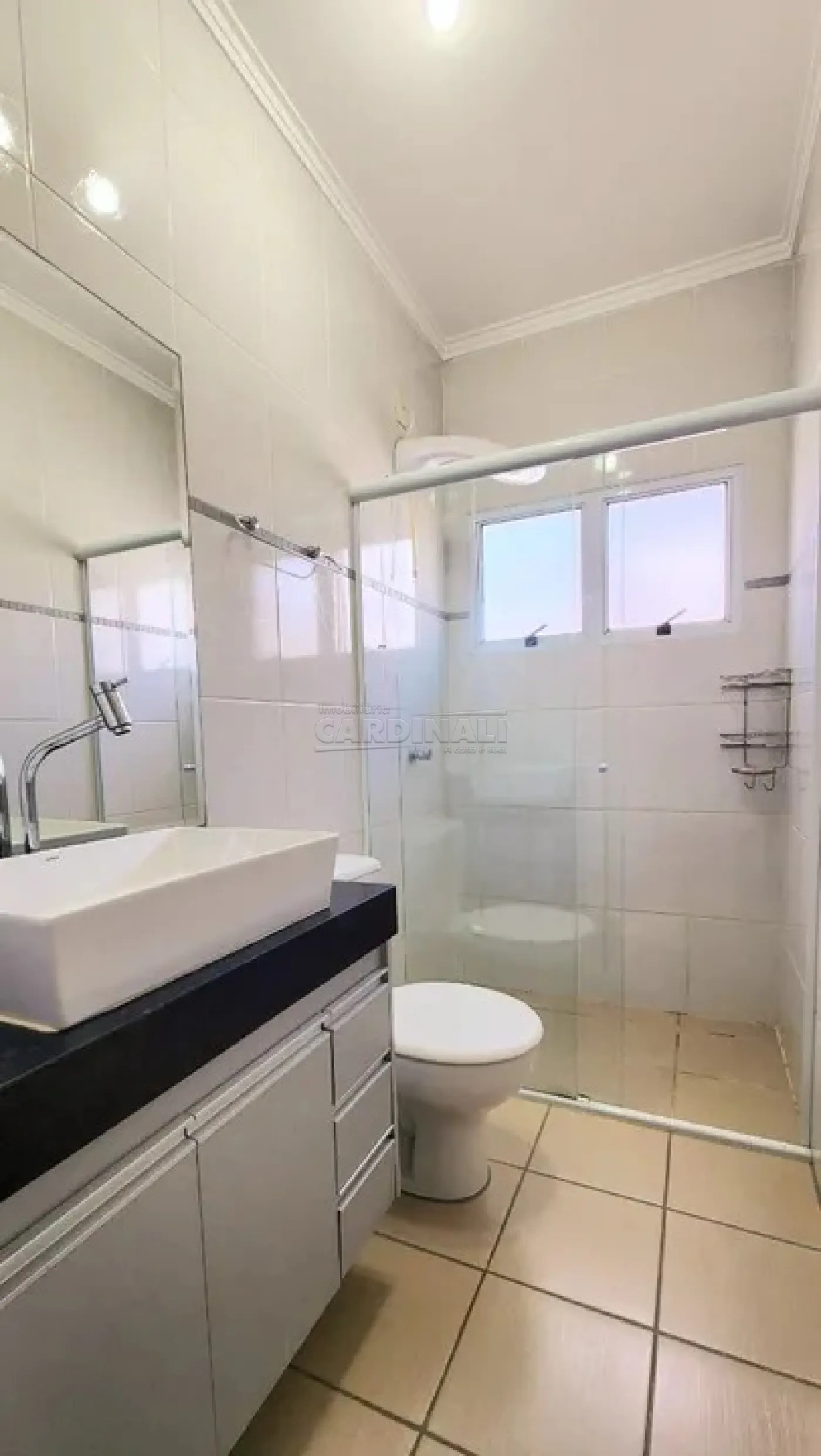 • Banheiros modernos com armários planejados, proporcionando praticidade e organização