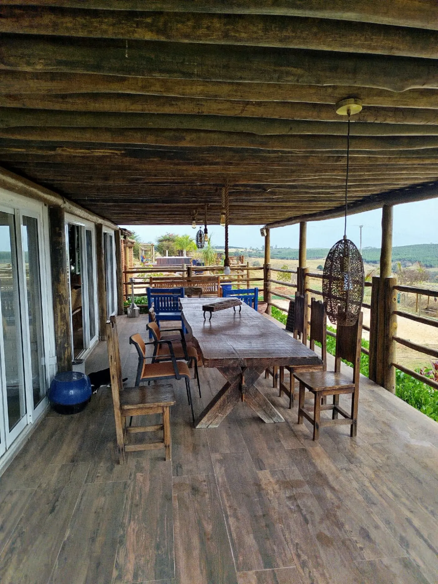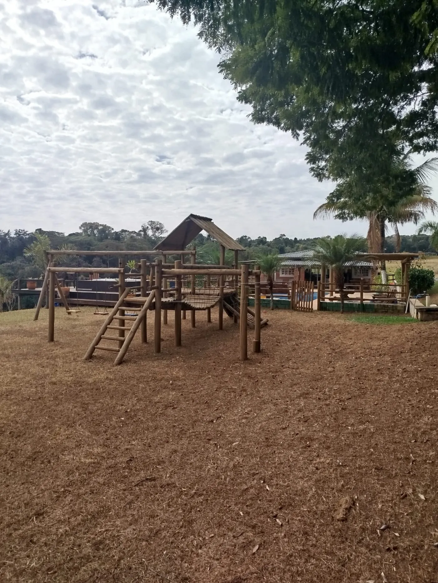 A residência principal conta com uma varanda aconchegante e uma suite no andar superior que oferece uma vista deslumbrante do entorno. A energia fotovoltaica e o poço semi-artesiano garantem um estilo de vida sustentável e independente. A infraestrutura para esportes e festas transforma cada evento familiar em momentos memoráveis, sem sair de casa.