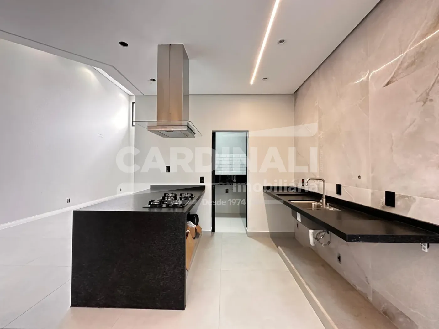 • Sala com pé direito duplo e cozinha integrada, garantindo um ambiente amplo e acolhedor.