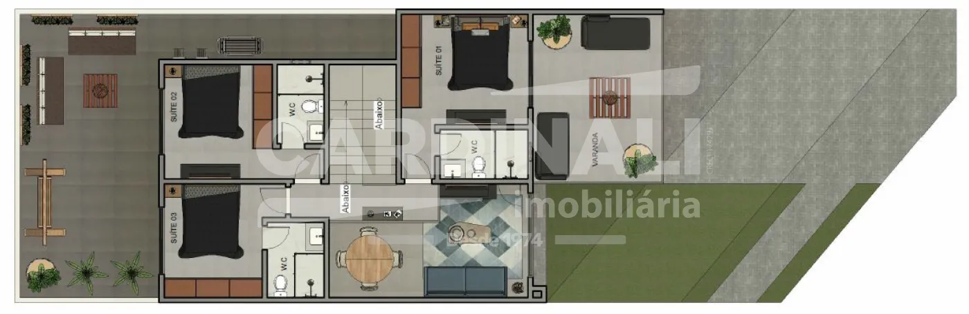 • 3 dormitórios, incluindo 2 suítes, proporcionando privacidade e conforto