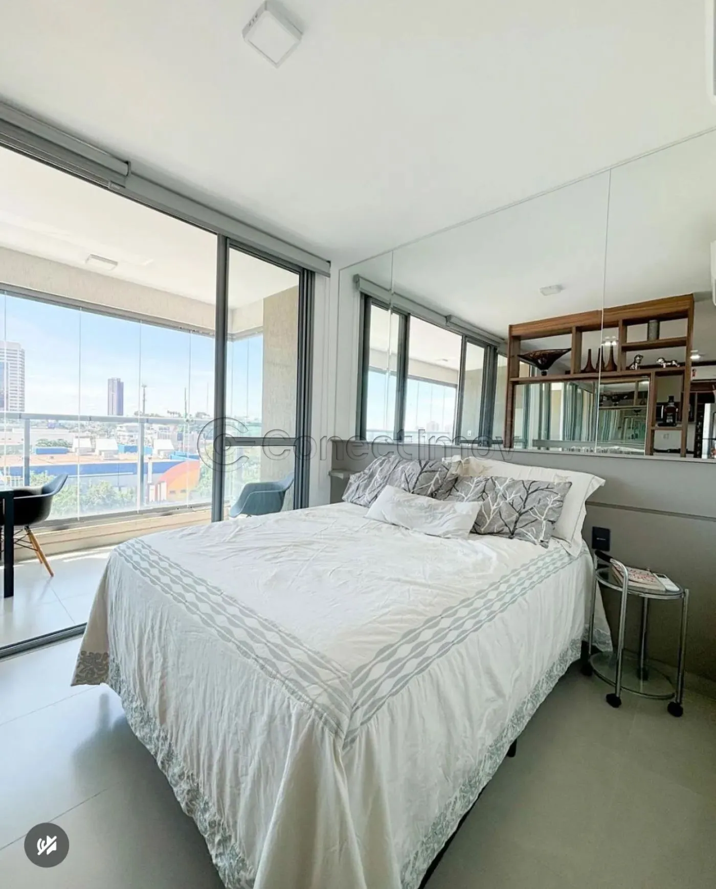 • 1 quarto com ar-condicionado e acesso à sacada, garantindo conforto e privacidade