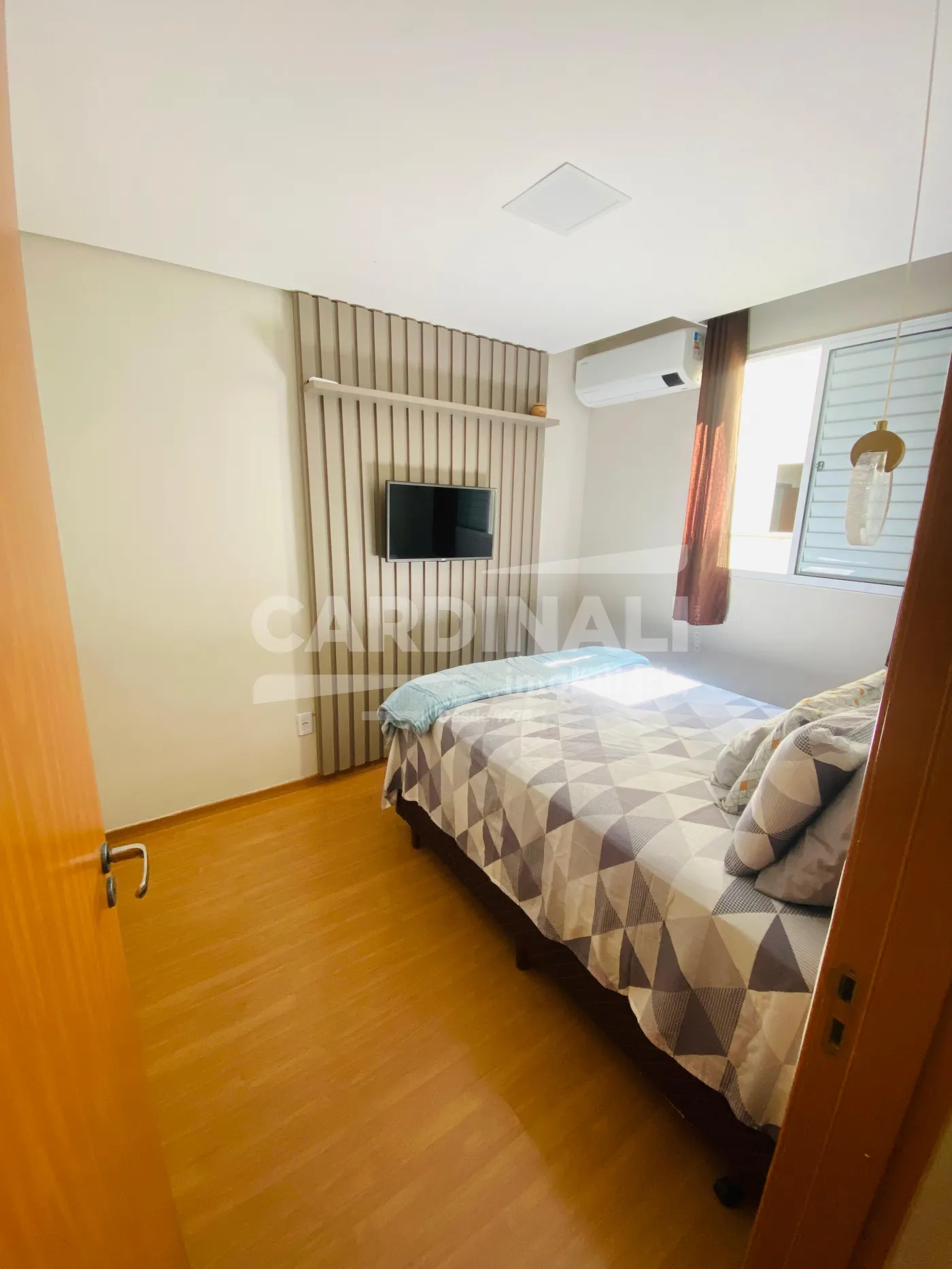 • 2 dormitórios aconchegantes, um com painel de TV, proporcionando um ambiente relaxante
