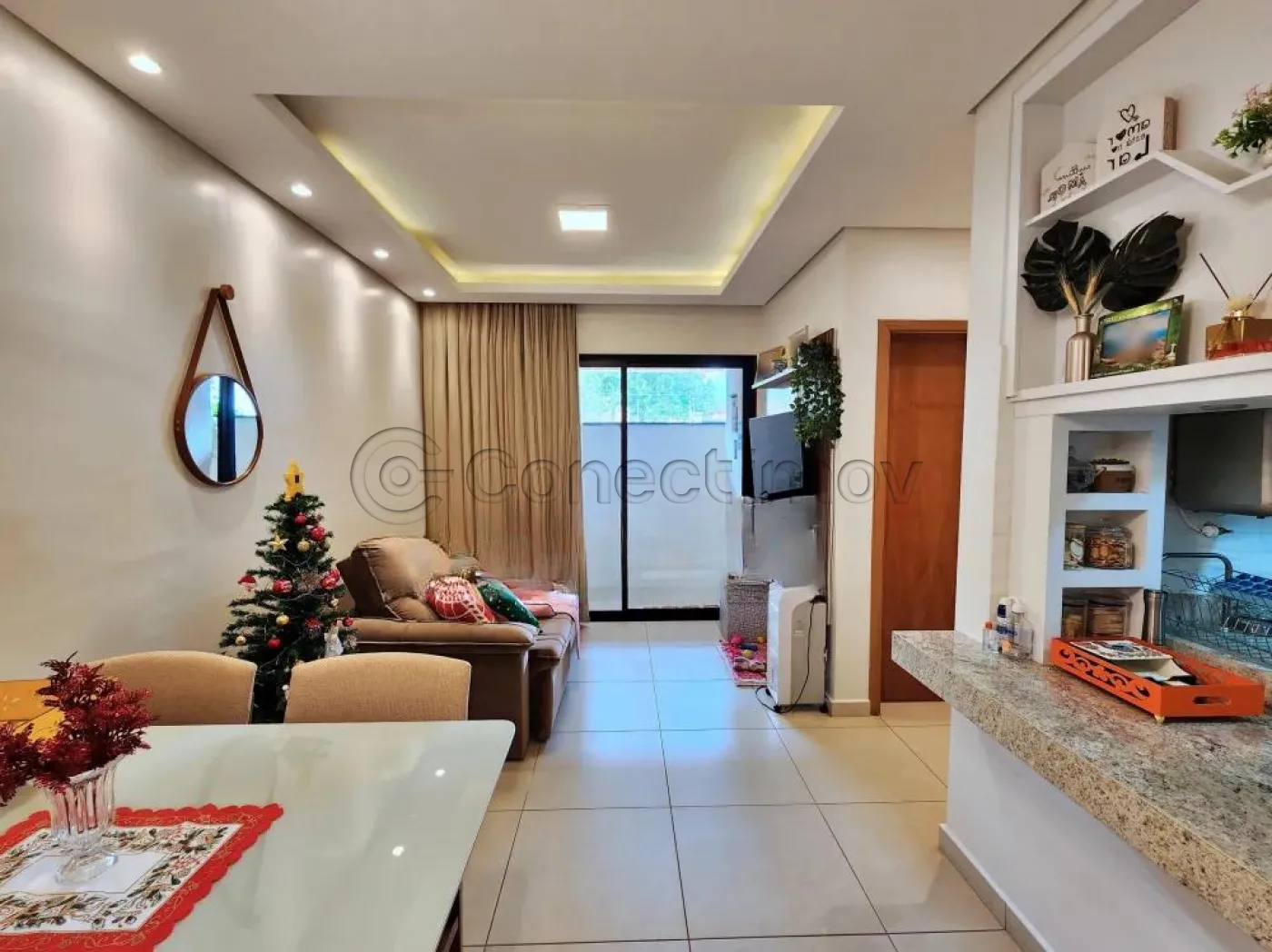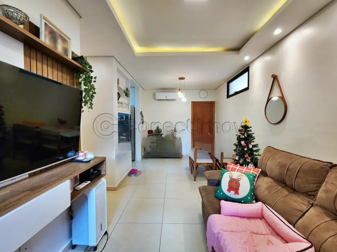 ? Sala para dois ambientes com ar-condicionado, proporcionando um espaço acolhedor para convivência