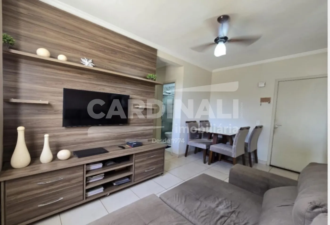 • Sala ampla com ventilador de teto, proporcionando um ambiente fresco e acolhedor.