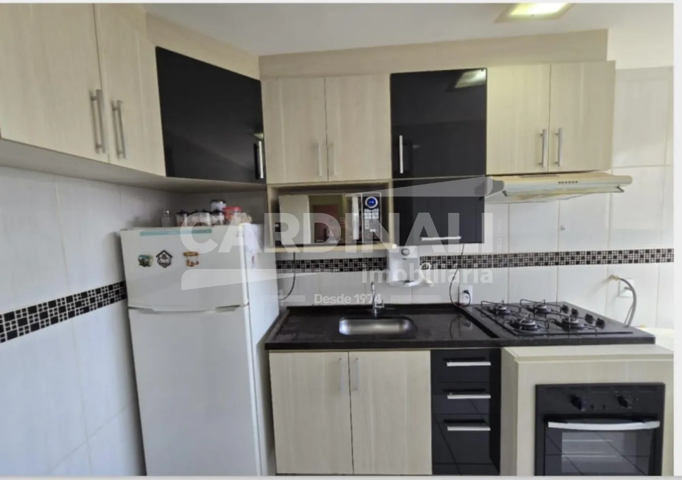 • Cozinha com armários e gabinete, oferecendo praticidade e organização.