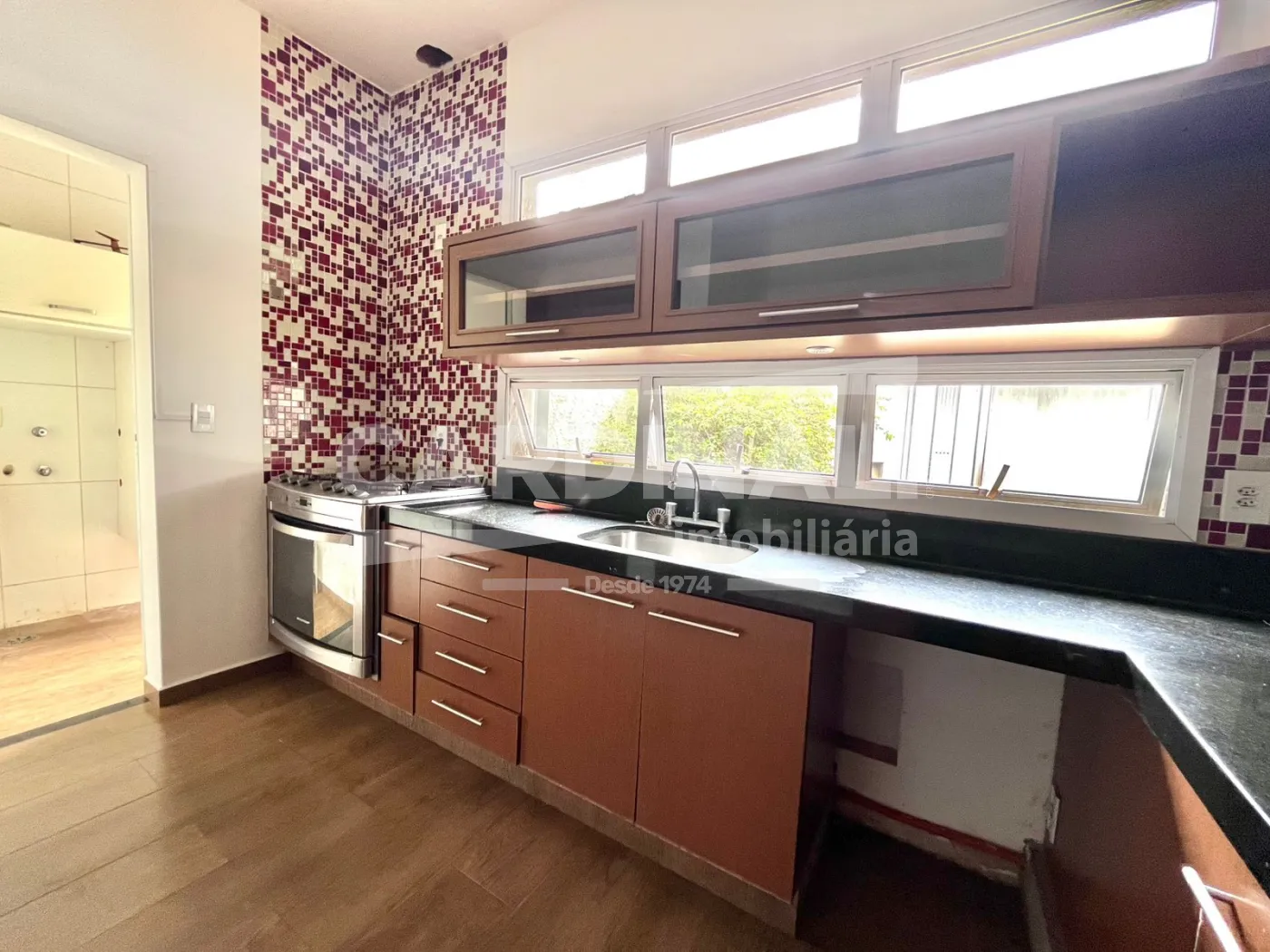 -Cozinha completa com armários, gabinete e fogão;