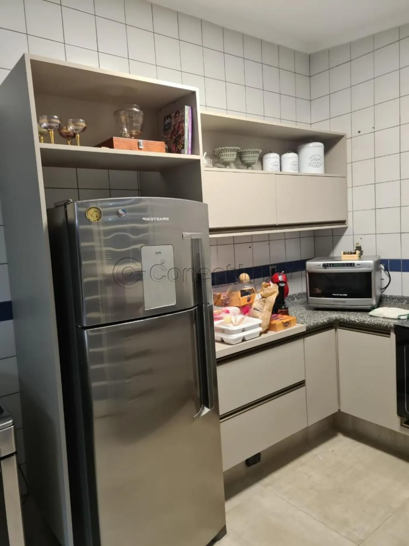 • Cozinha equipada com armários modernos, proporcionando praticidade