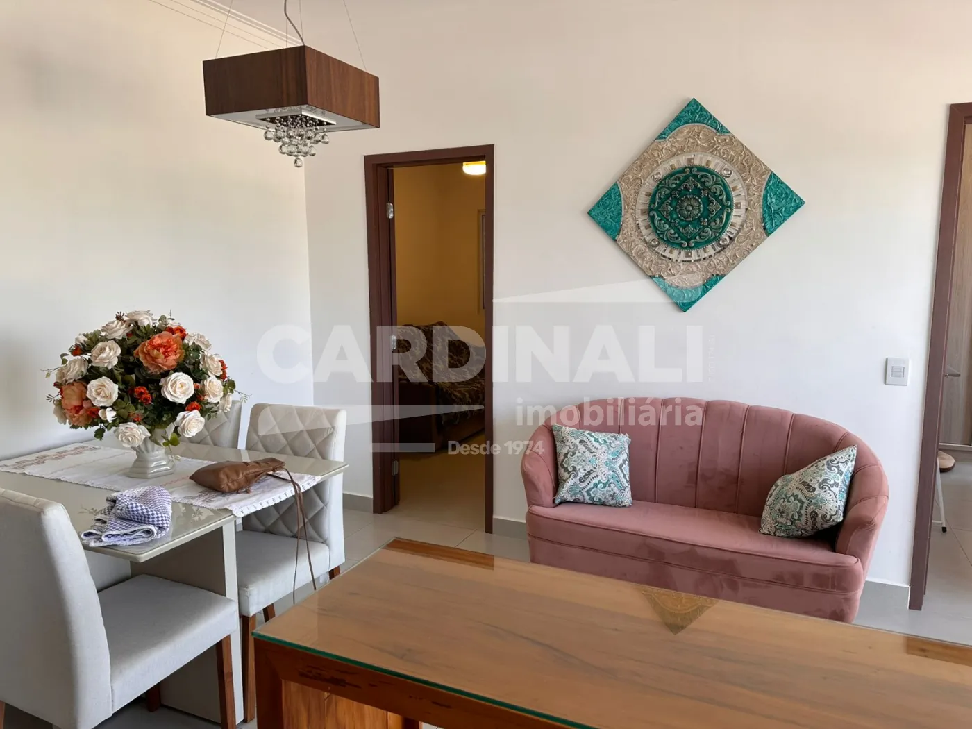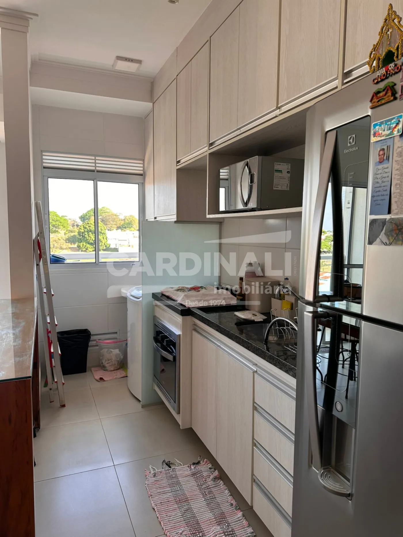 O imóvel possui sala, cozinha, 2 suítes, lavanderia e 1 vaga de garagem.