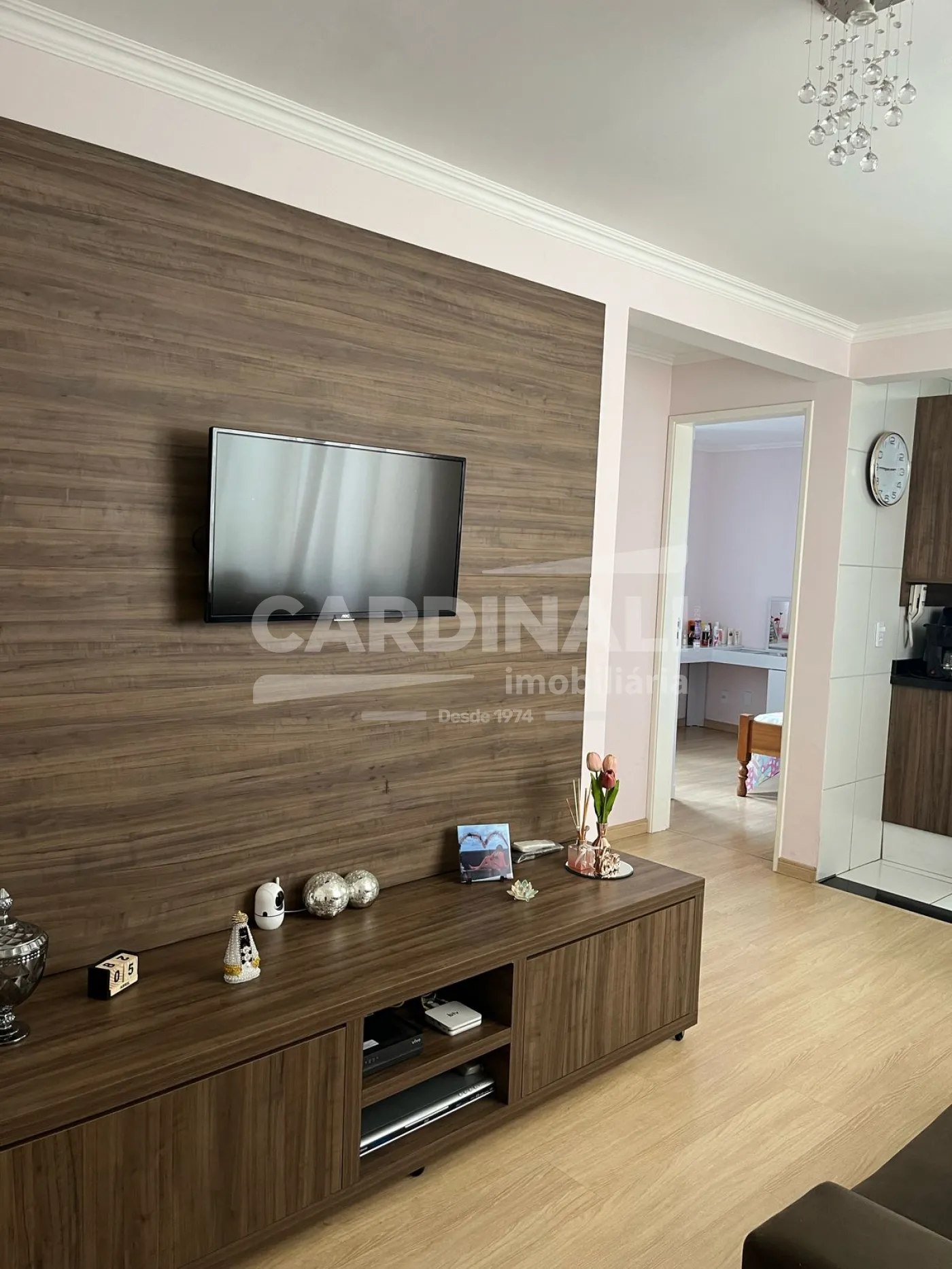 • Sala com rack e painel planejados, garantindo um ambiente moderno e organizado