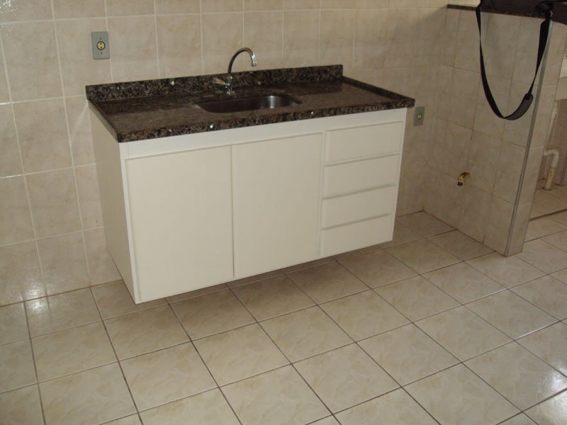 • Cozinha com acabamentos de azulejo até o teto, proporcionando facilidade de limpeza
