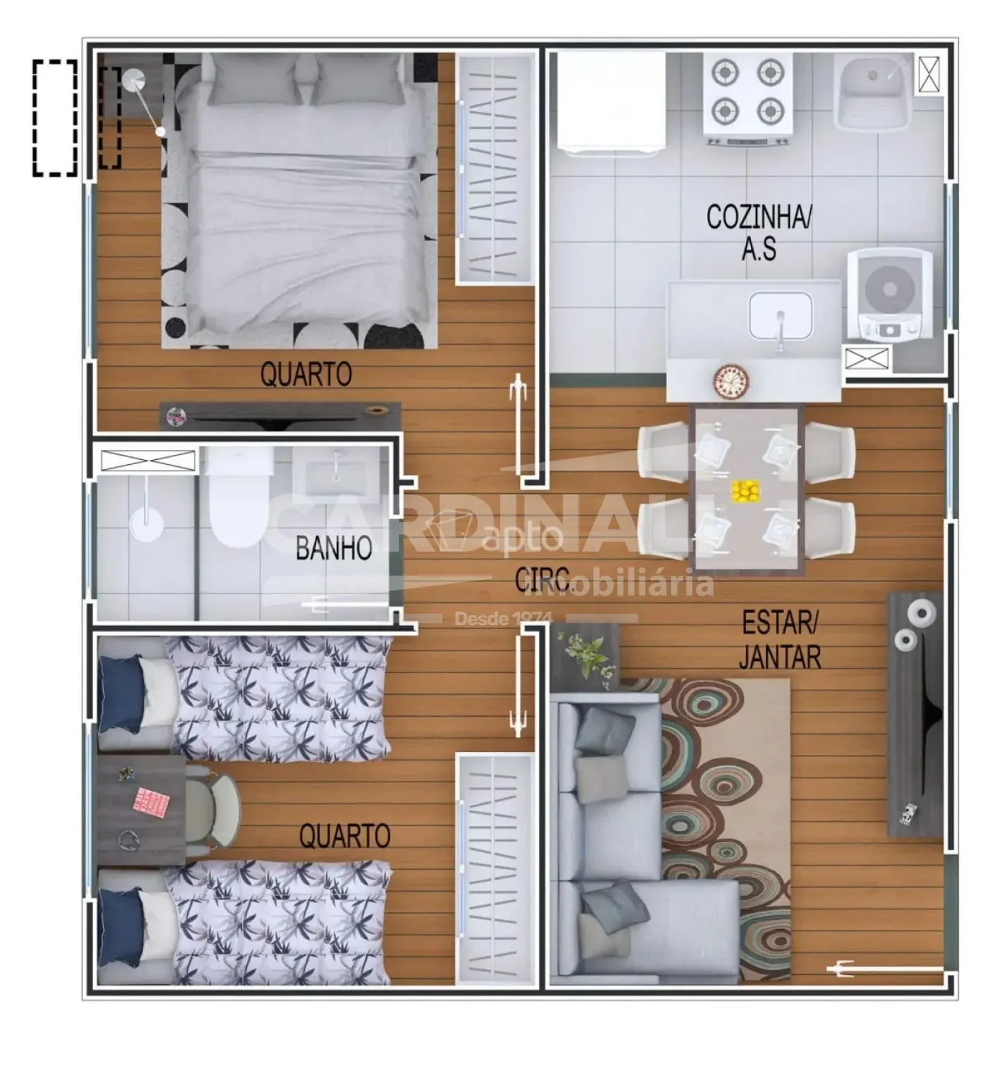 Descubra o prazer de viver em um apartamento que combina funcionalidade, conforto e uma localização privilegiada. Situado no bairro Recreio São Judas Tadeu, São Carlos - SP, este imóvel é perfeito para quem deseja tranquilidade e praticidade no dia a dia. Características do Imóvel ? 2 dormitórios amplos assegurando conforto e privacidade ? Sala arejada e cozinha com espaço para armários, proporcionando funcionalidade ? Área comum confortável, oferecendo bem-estar para você e sua família ? 1 vaga de garagem coberta, garantindo segurança para seu veículo ? Portaria 24 horas, trazendo tranquilidade e segurança extra para os residentes Diferenciais que Fazem a Diferença Os dois dormitórios deste apartamento são projetados para maximizar o conforto e a luminosidade, garantindo uma área íntima acolhedora. A portaria 24 horas proporciona uma sensação constante de segurança, enquanto a vaga coberta de garagem oferece proteção para seu veículo contra as intempéries. A distribuição inteligente dos 46 m² de área útil permite um aproveitamento eficiente do espaço, tornando seu lar prático e agradável para o dia a dia. Localização Privilegiada Localizado em uma área tranquila de São Carlos, este apartamento coloca você próximo a supermercados, escolas, farmácias e opções de lazer, sem abrir mão da paz necessária para um bom descanso em casa. A região é conhecida por ser segura e tranquila, ideal para quem preza por qualidade de vida e conveniência. Além disso, a valorização constante do bairro garante um excelente investimento para o futuro. Ideal Para Você Ideal para casais ou pequenas famílias que buscam conforto e praticidade em um ambiente seguro. Este apartamento é perfeito se você valoriza estar próximo às comodidades urbanas enquanto desfruta de um refúgio tranquilo para relaxar e recarregar energias. Não Perca Esta Oportunidade Este apartamento representa uma oportunidade única de investir em um imóvel com excelente custo-benefício em uma das áreas mais tranquilas e valorizadas de São Carlos. Com todas as facilidades que oferece e a segurança de uma portaria 24 horas, é uma escolha inteligente para quem busca um novo lar ou uma excelente opção de investimento. Agende sua visita e descubra como é viver com qualidade e conforto!