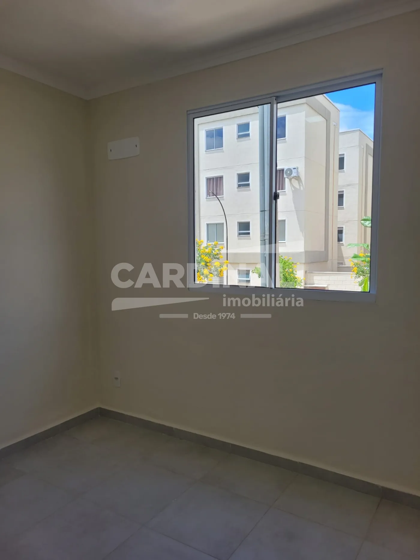 Apartamento térreo. Possui 2 dormitórios, 1 banheiro, sala para 2 ambientes, cozinha com lavanderia e vaga de