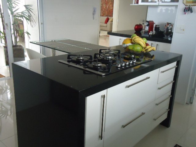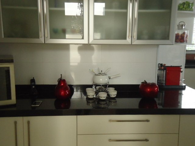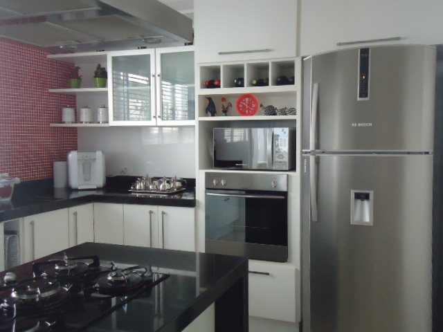 • Cozinha com azulejos até o teto e piso de porcelanato, trazendo praticidade e elegância