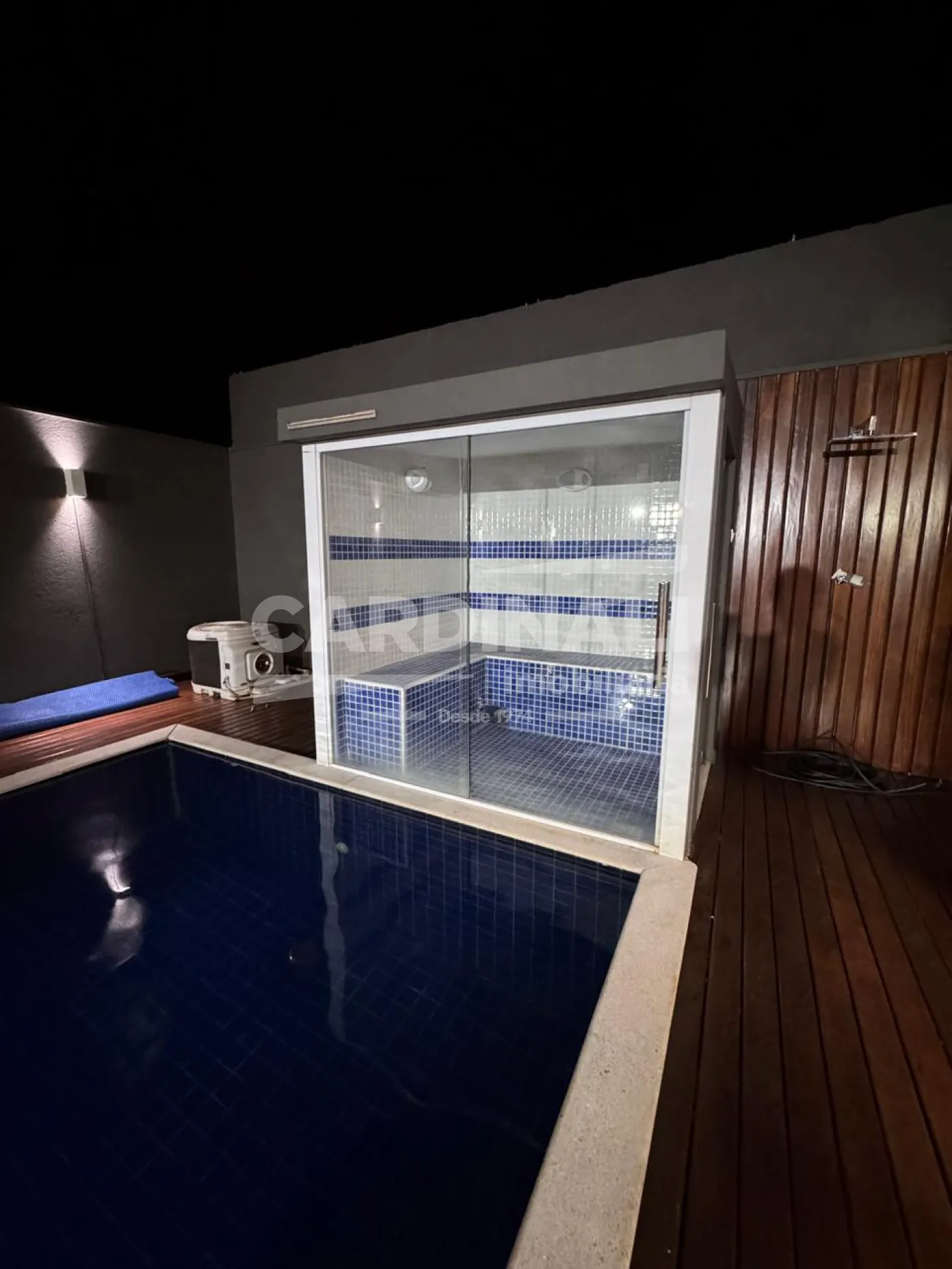 Piscina com sauna panorâmica