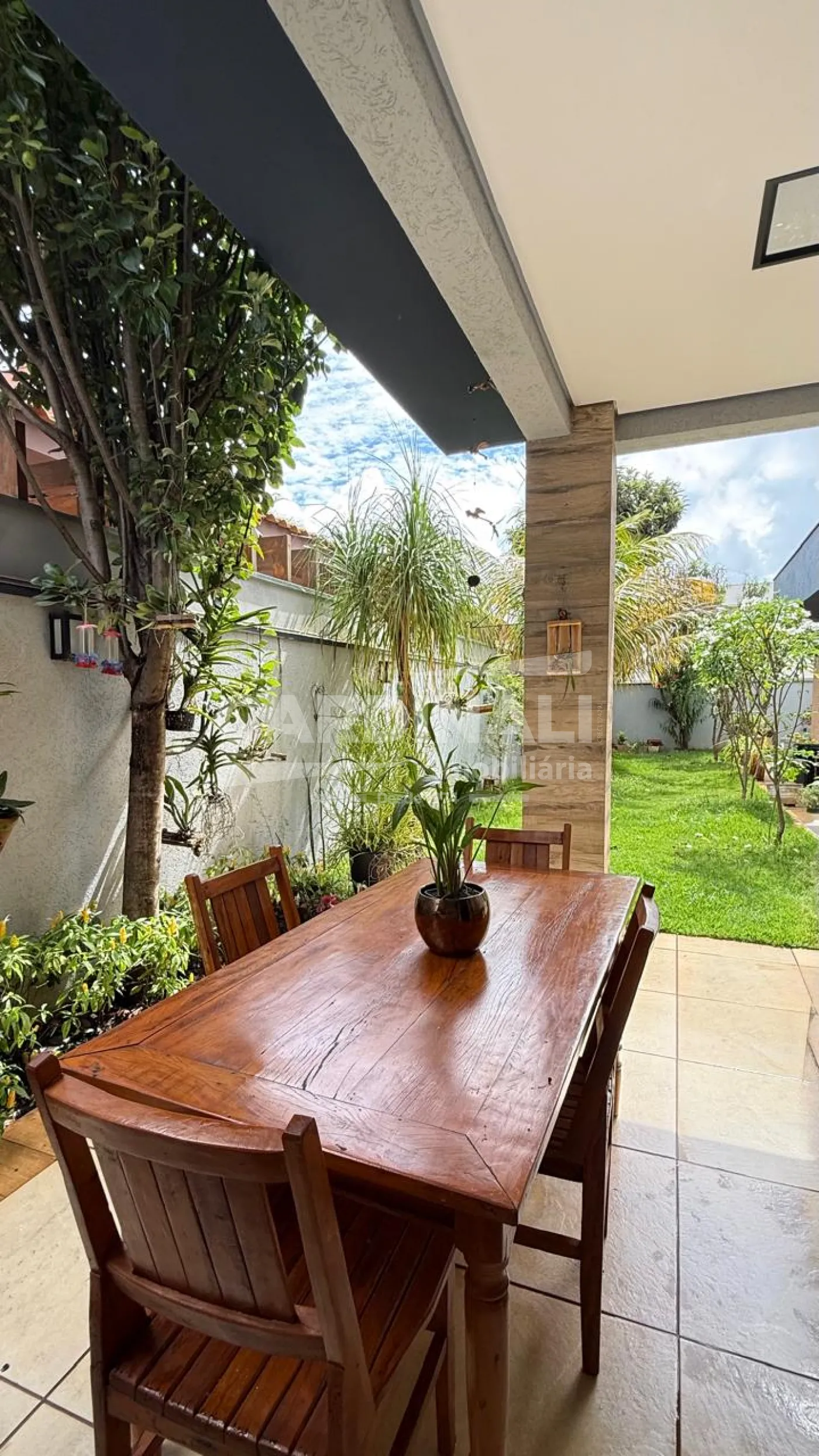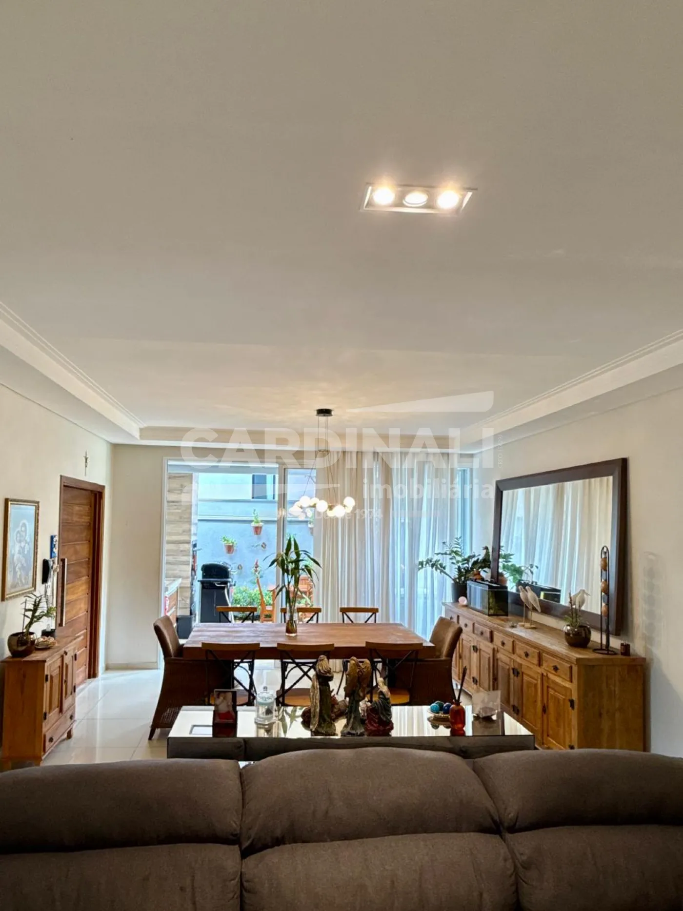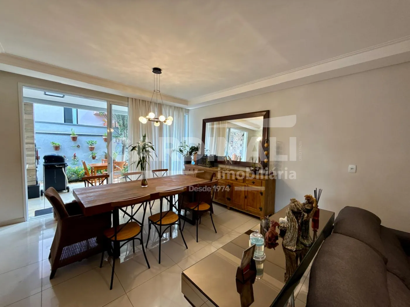 O living para 2 ambientes, com lavabo, se conecta à cozinha e à varanda gourmet com churrasqueira, criando um espaço acolhedor e funcional, ideal para receber. O jardim amplo complementa o ambiente, trazendo leveza e contato com a natureza.