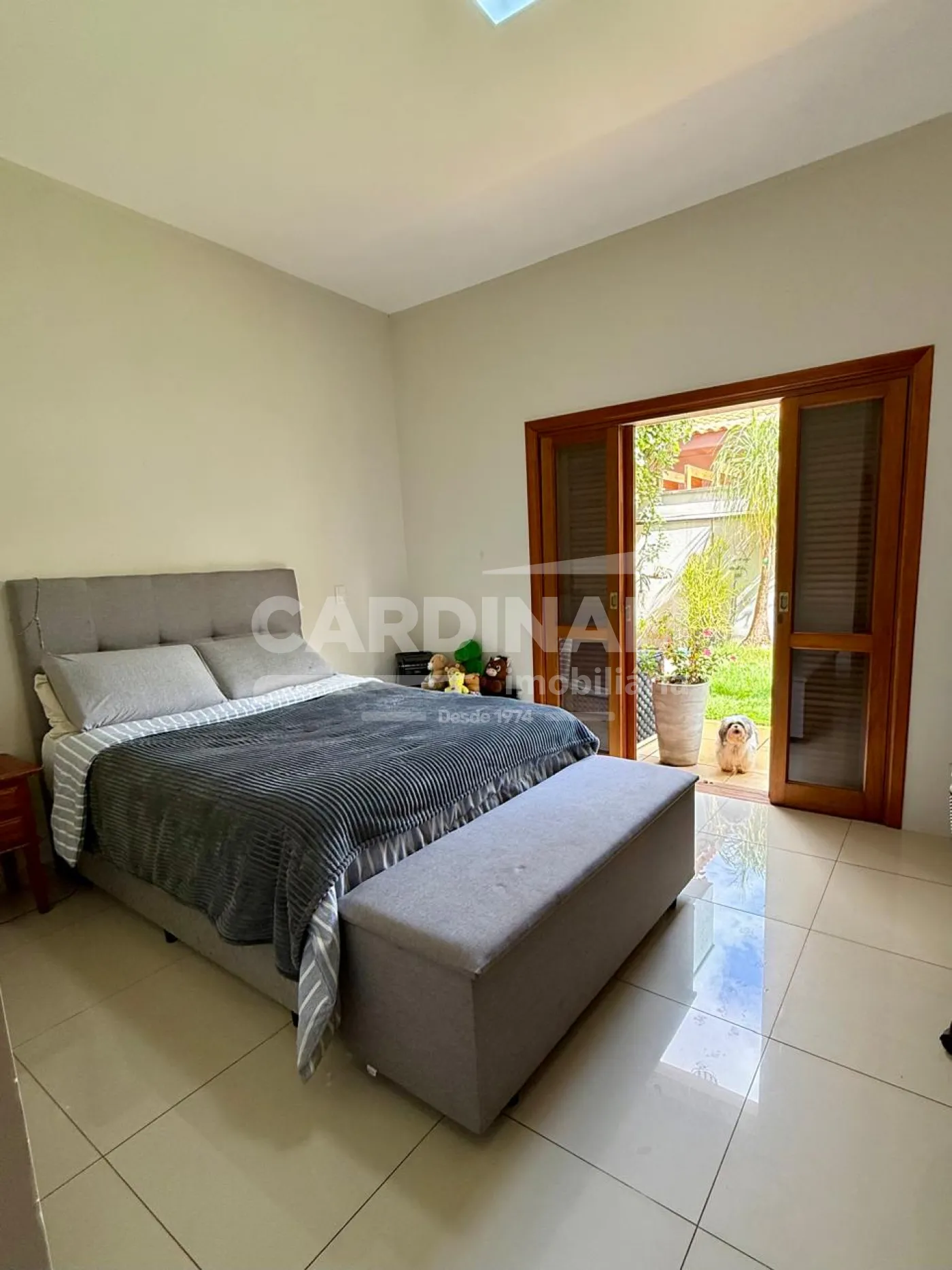 A área íntima é composta por 3 suítes com vista para o jardim e amplo roupeiro, garantindo privacidade e conforto.