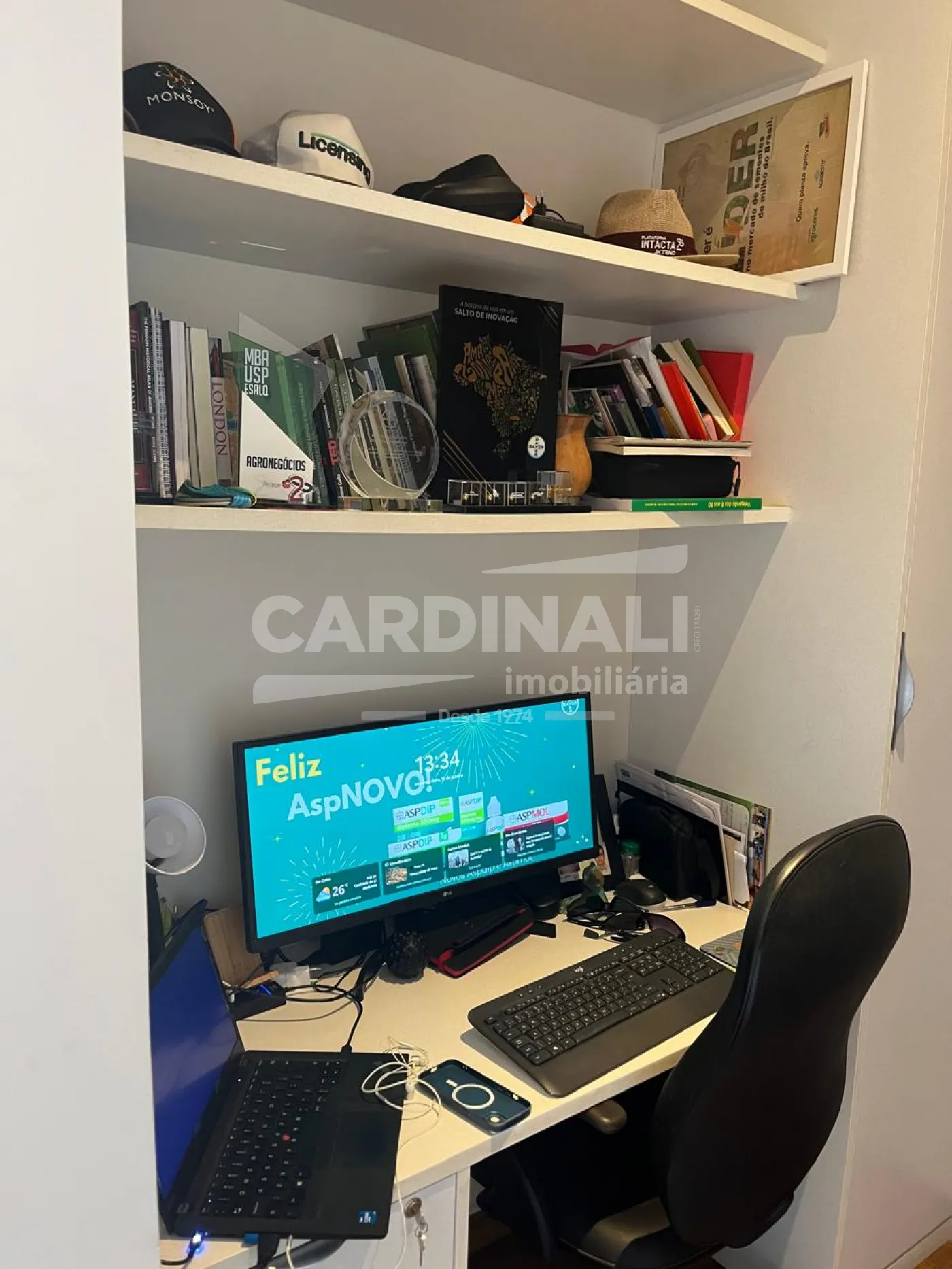 Na área íntima, o imóvel conta com 3 suítes, sendo a suíte master com closet, além de roupeiro e home office, garantindo organização e um espaço reservado para trabalho ou estudos.