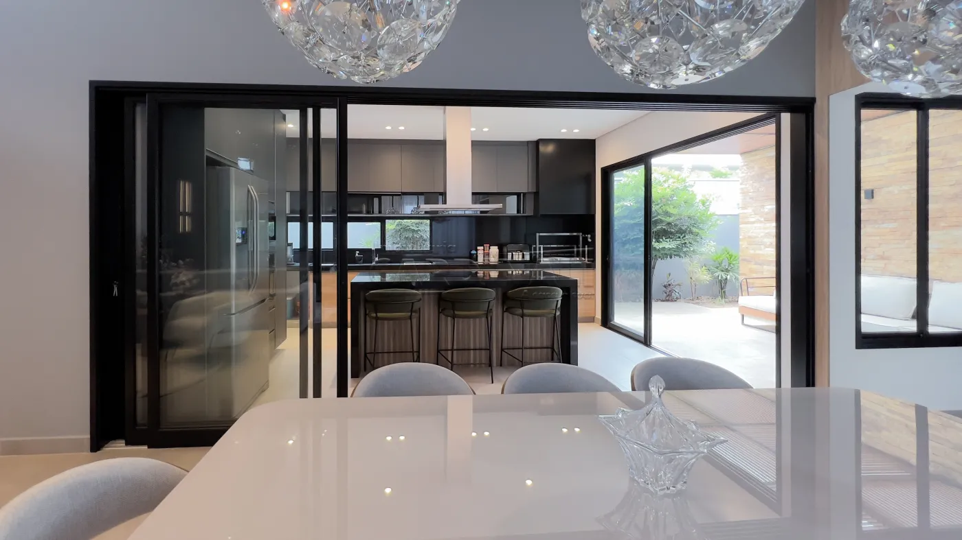 A cozinha gourmet, integrada à área social, se destaca como o ponto de encontro da casa, favorecendo a convivência de forma natural.