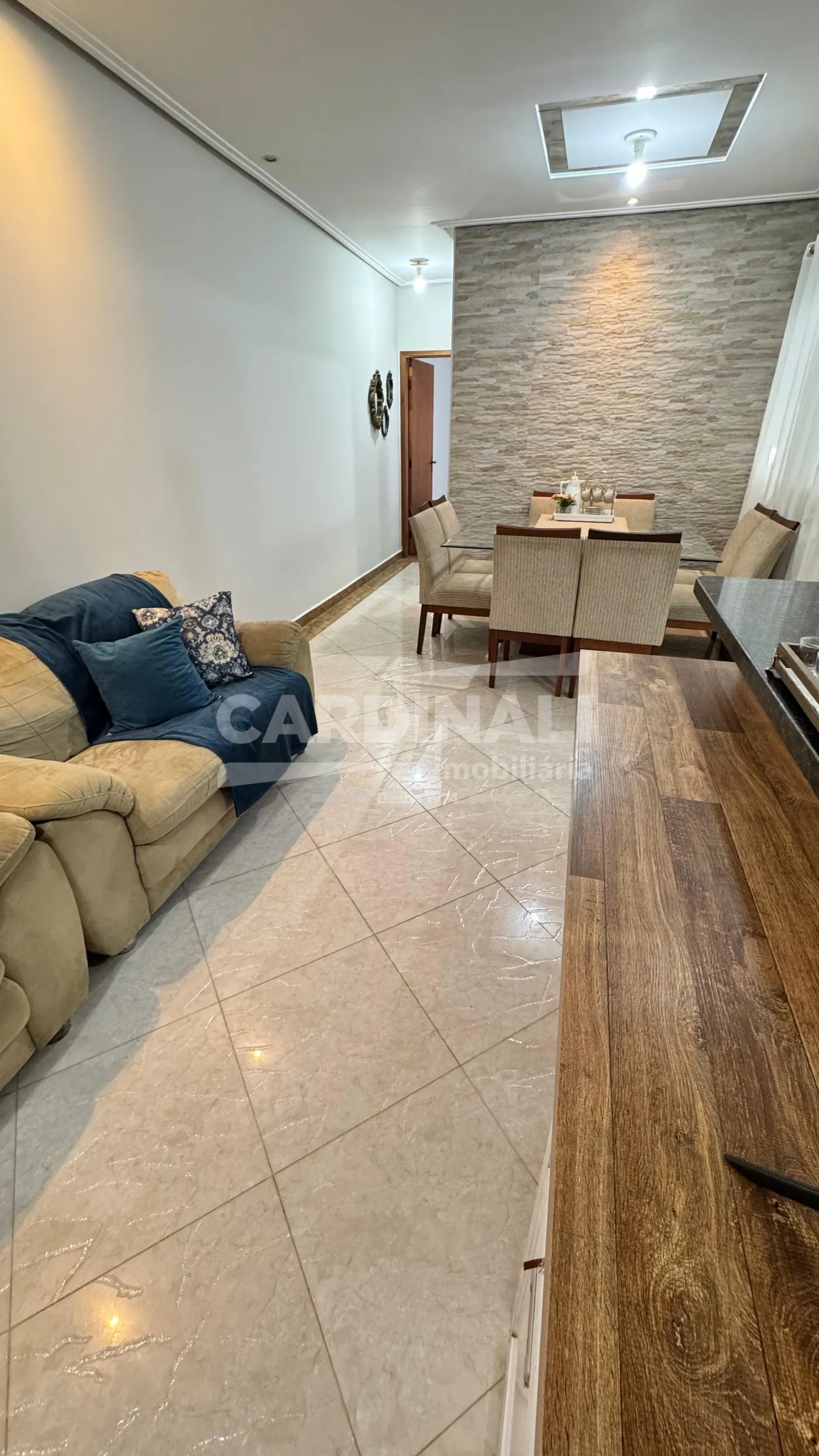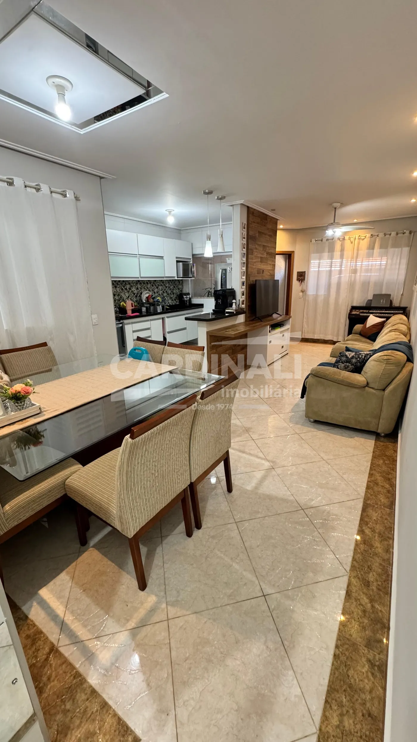 • Sala integrada com a cozinha, oferecendo um ambiente amplo e acolhedor.