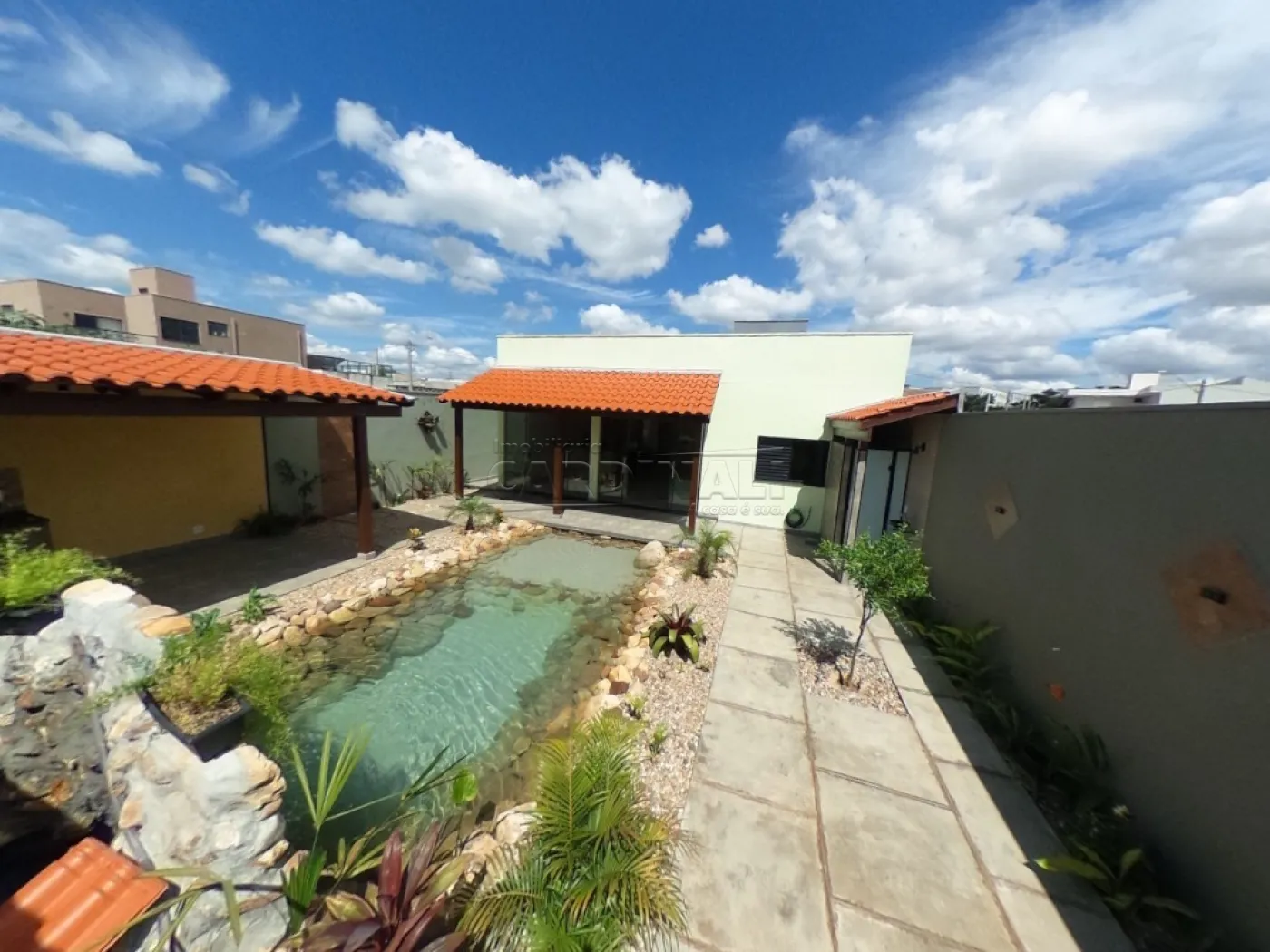 • Quintal amplo com piscina natural e área de lazer, oferecendo diversão sem sair de casa.