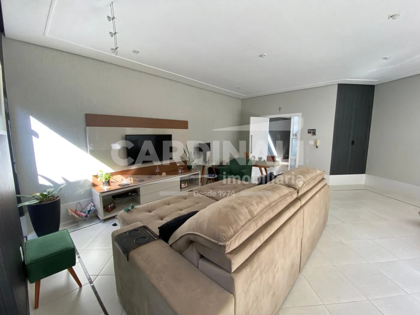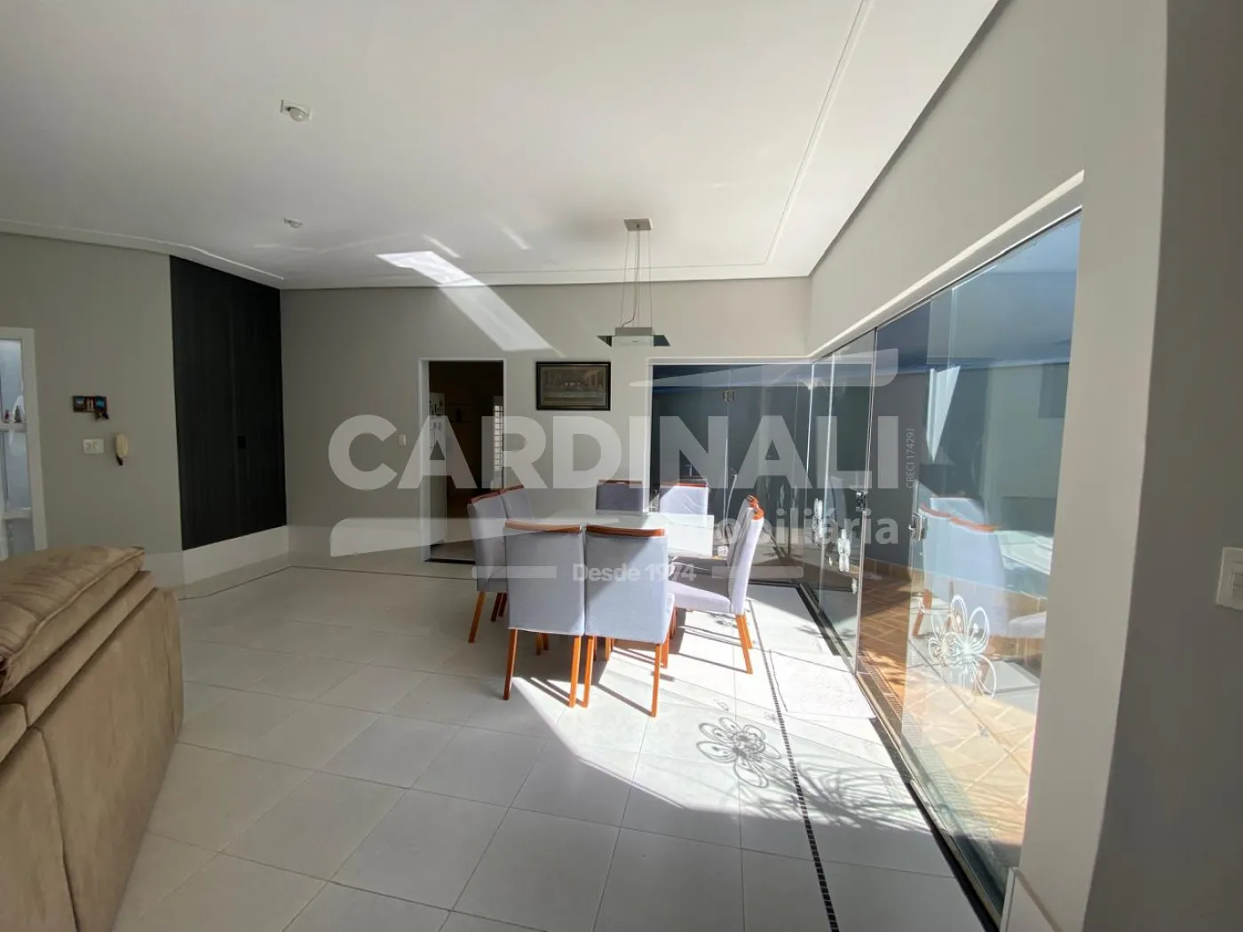 • Ampla sala com acabamento de alto padrão em porcelanato, oferecendo um ambiente elegante para receber