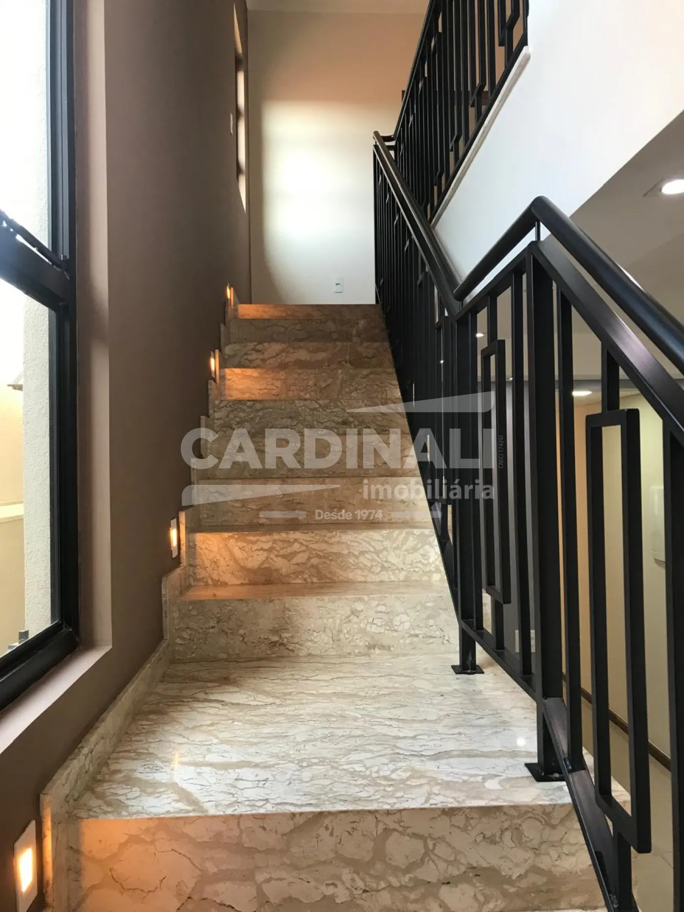 Escada com acabamento em mármore