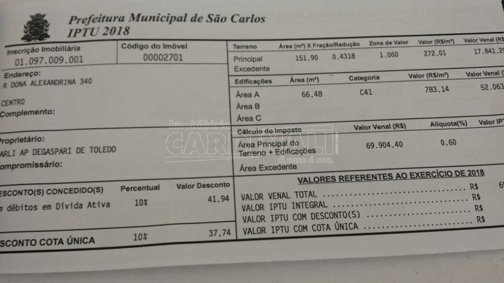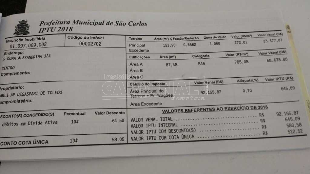 Situado no coração do centro de São Carlos, este imóvel goza de uma posição privilegiada que oferece excelente exposição e acessibilidade. Encontra-se direto em frente à Caixa Econômica Federal, um ponto de referência conhecido e frequentemente visitado na cidade, o que aumenta ainda mais a visibilidade para seu negócio. A proximidade com serviços, bancos e outras conveniências urbanas é um fator de conveniência adicional, além de contribuir para a valorização contínua do local.